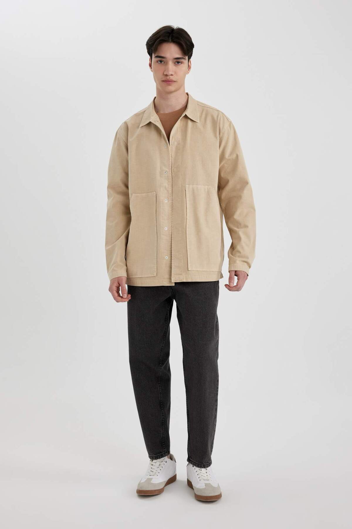 دفاکتو پیراهن آستین بلند نخی جیبی Relax Fit B5905AX24SP