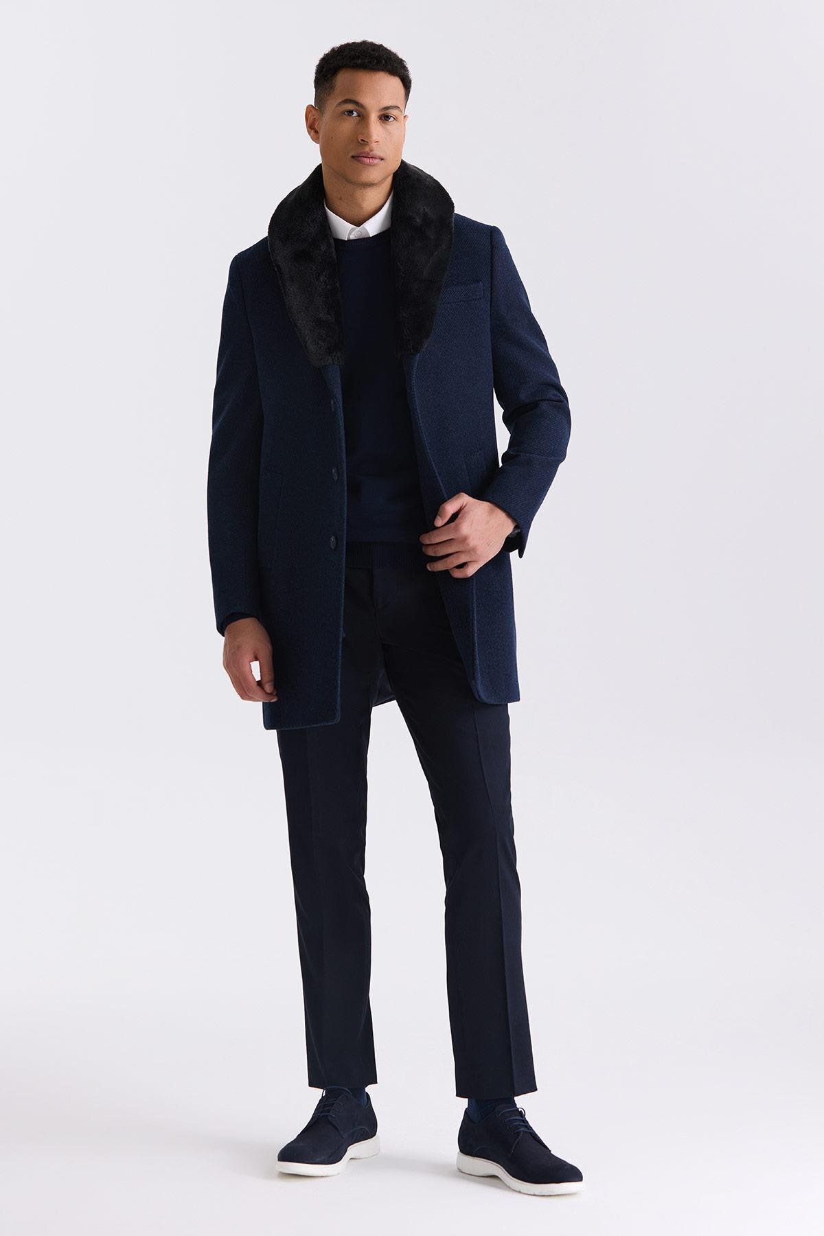 جاکامن کت ترمه پشمی یقه ای با تناسب معمولی آبی سرمه ای