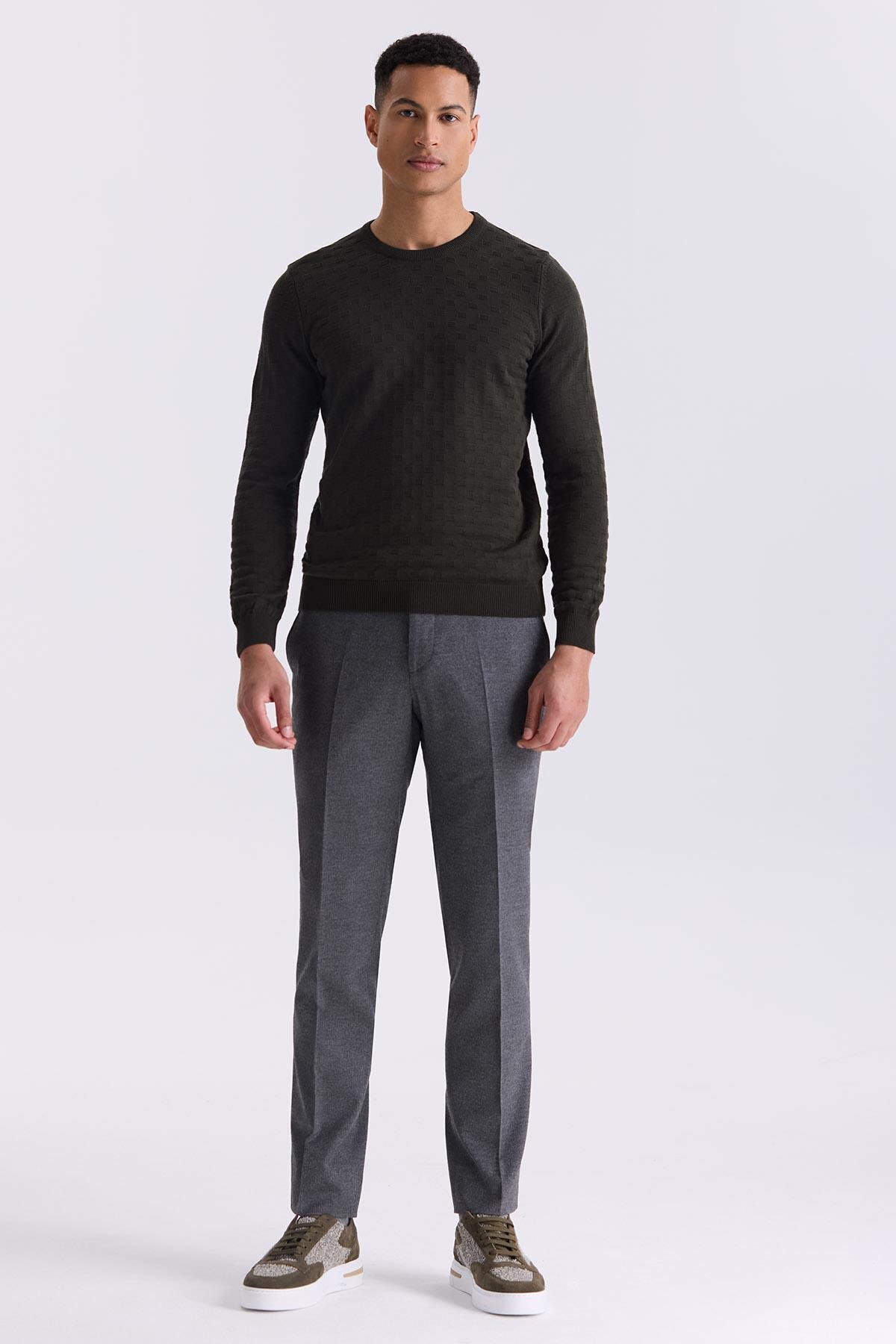 جاکامن ژاکت بافتنی طرح دار یقه اسلیم فیت خاکی
