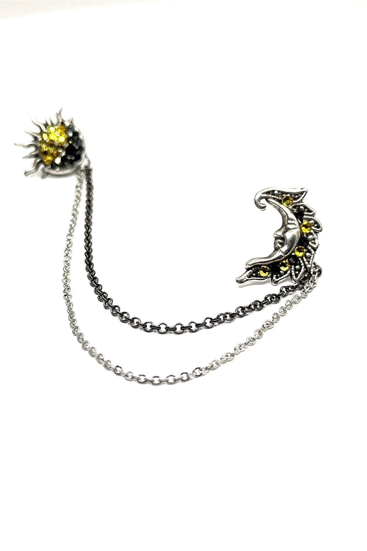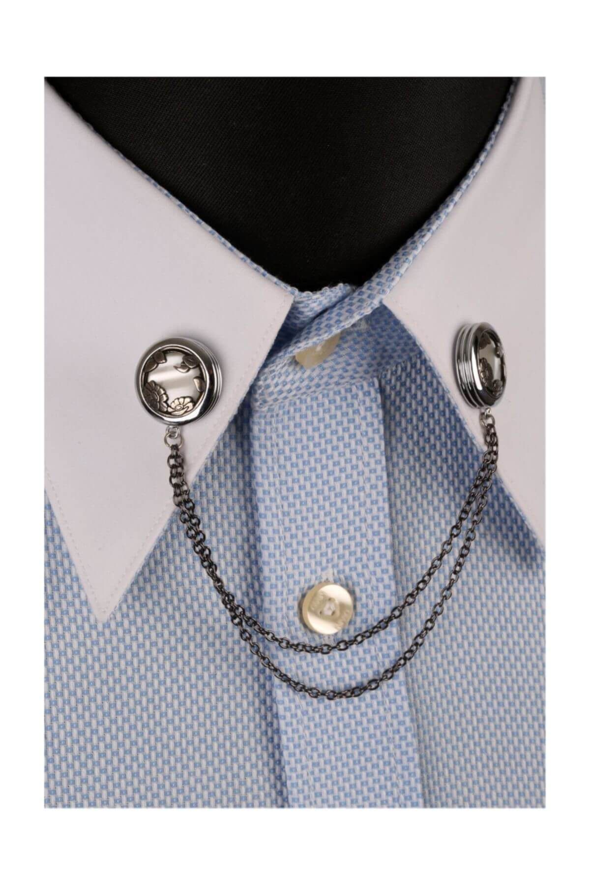 زنجیر یقه پیراهن طرح خورشید با سنگ نقرهای رنگی GI235 مردانه رنگارنگ | Kravatkolik KRVT8690002234546