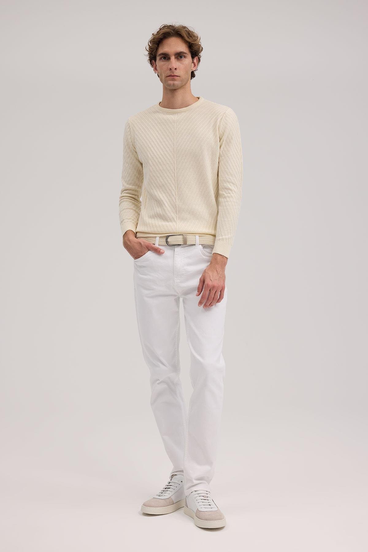 جاکامن ژاکت یقه خدمه با طرح باریک بژ
