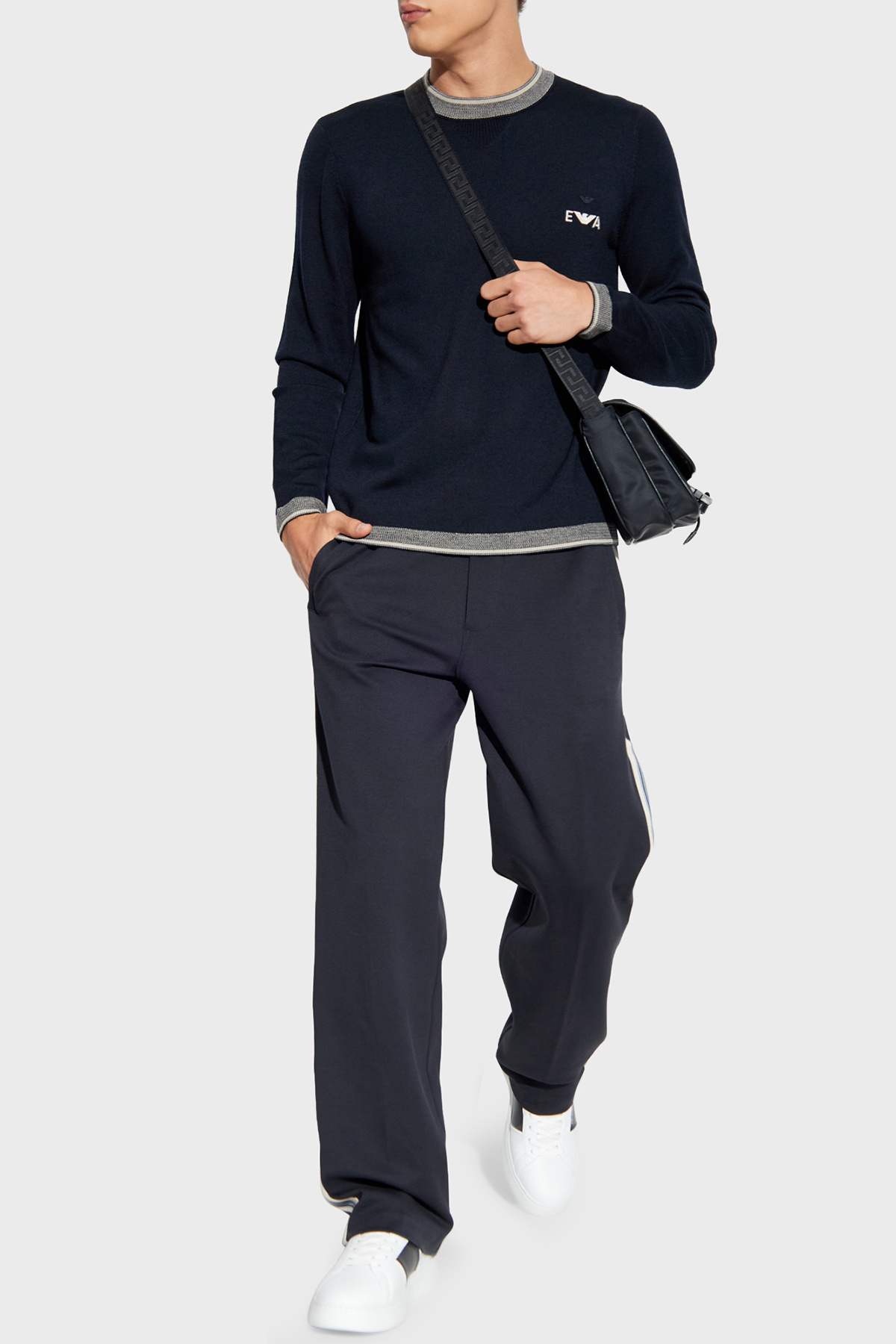 امپوریو آرمانی لوگو چاپ شده 100% پشم یقه ژاکت پلیور مردانه 6k1mxa 1msrz 0999