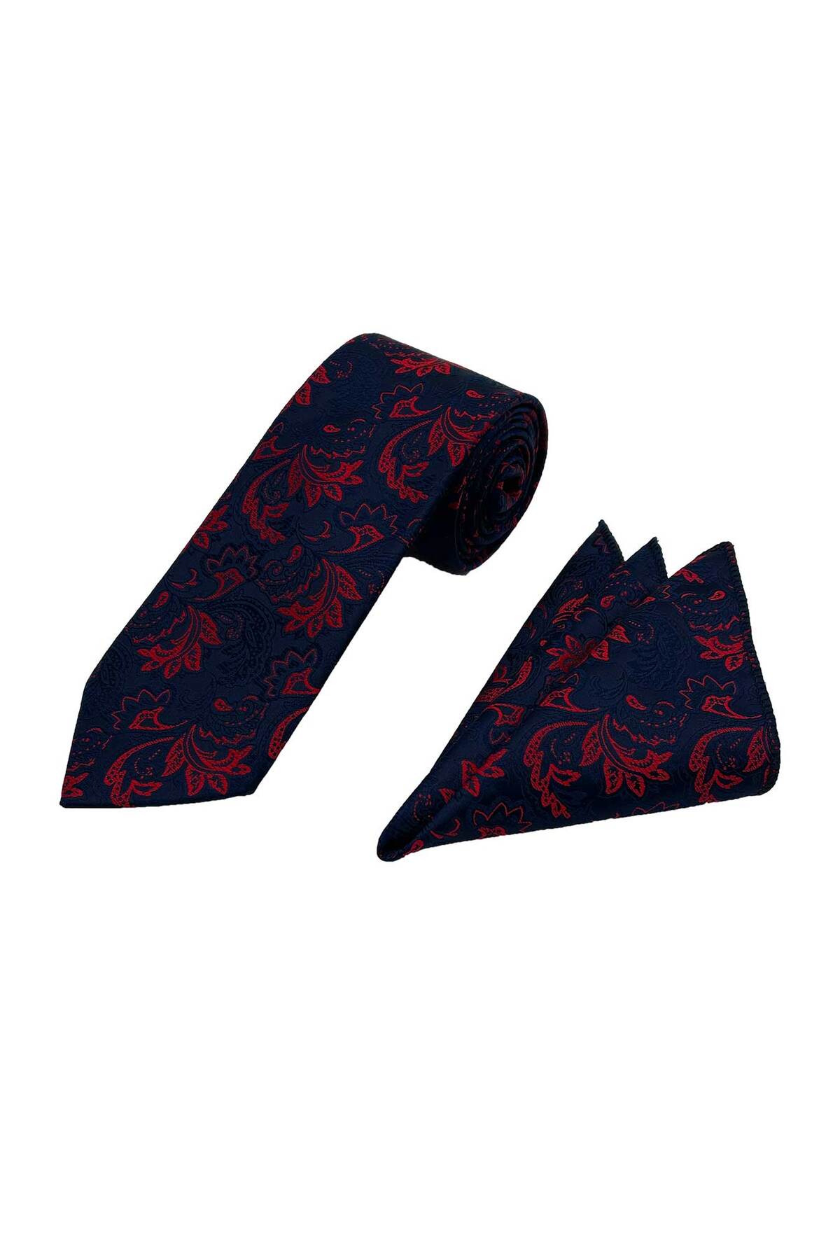 ست کراوات و دستمال طرح موتیف قرمز سرمه ای