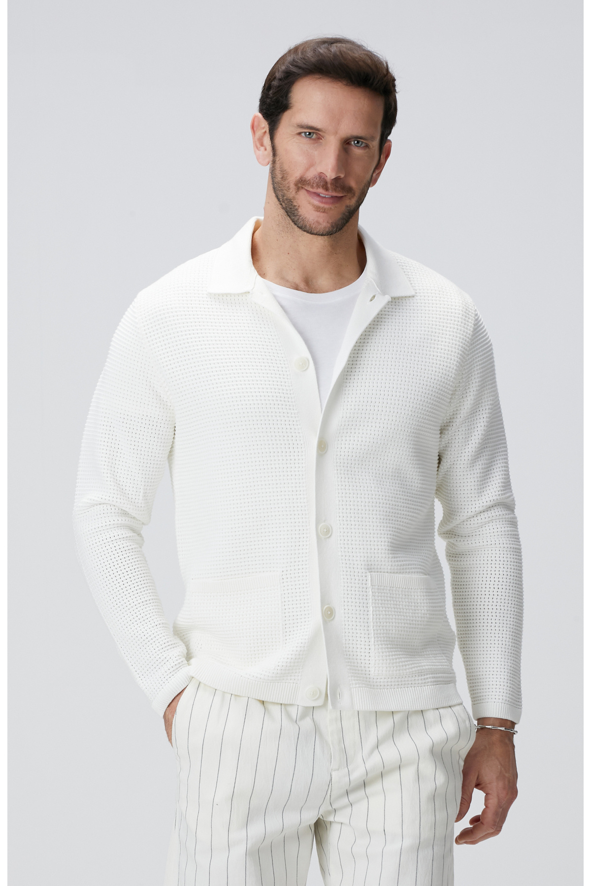 نتورک ژاکت کش باف پشمی سفید