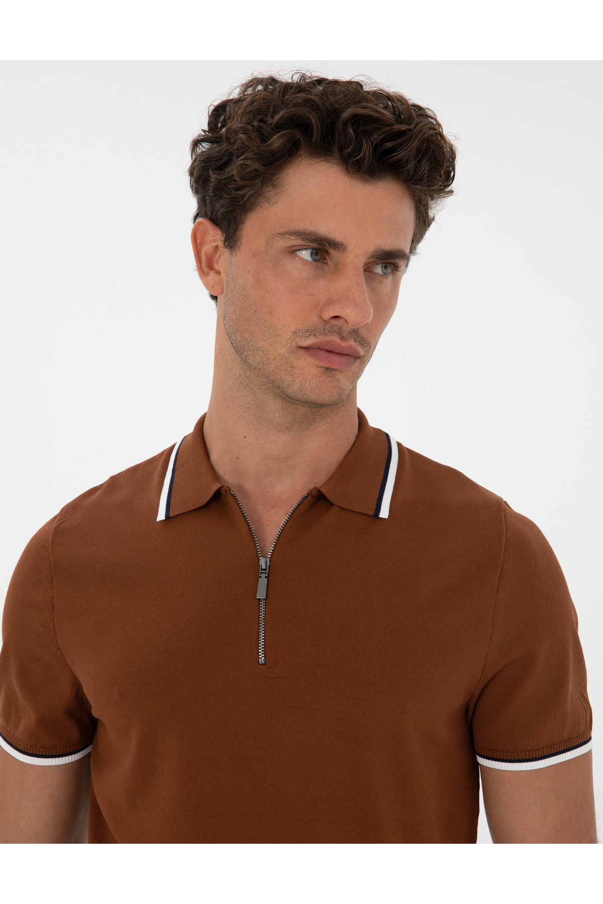 پیر کاردین ژاکت بافتنی با یقه پولو باریک قهوه ای 50315745-VR040