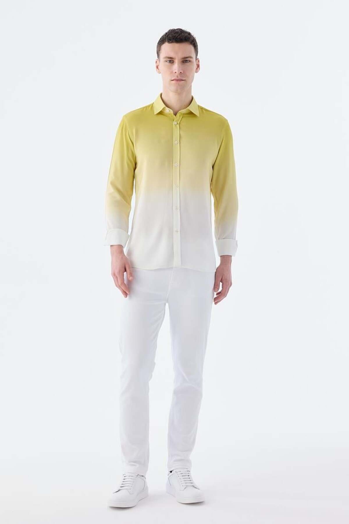 جاکامن پیراهن یقه پایین دکمه دار زعفرانی کامفورت تناسب آهنی
