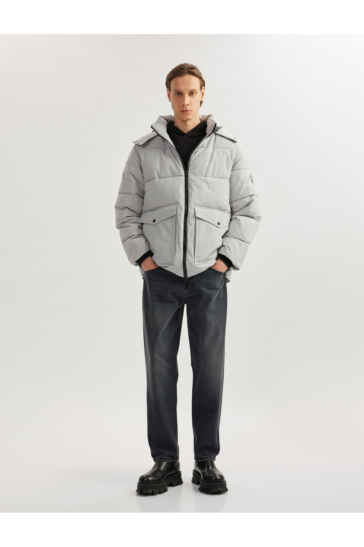 کوتون کاپشن پفی کلاهدار باریک با جزئیات چاپ شده و جیب