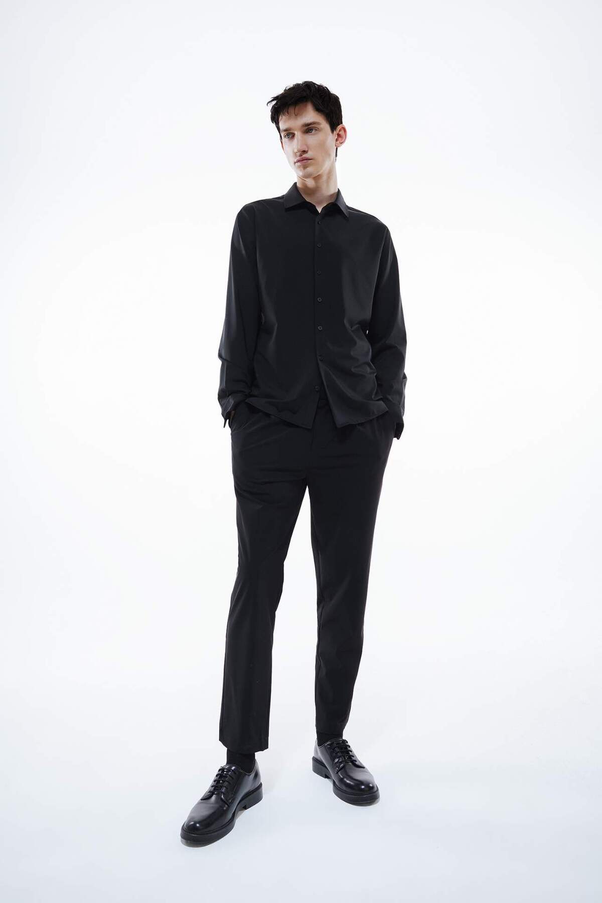دفاکتو Slim Fit Slim Cut یقه پولو پارچه انعطاف پذیر ساده پیراهن آستین بلند ساده B6491AX24SP