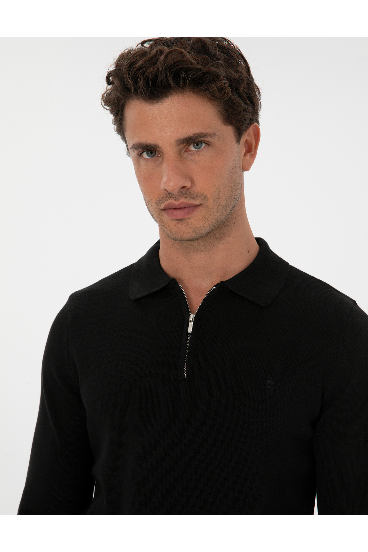 پیر کاردین ژاکت بافتنی پایه یقه باریک مشکی زیپ دار 50315406-VR046