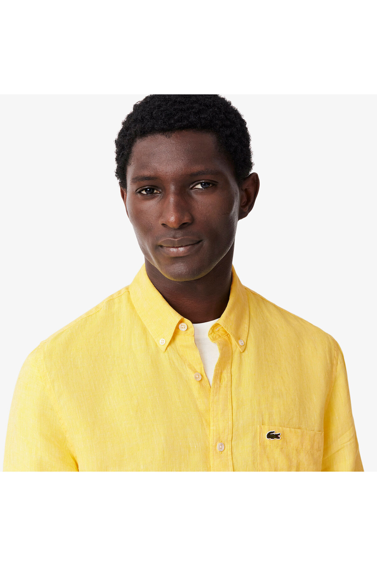 لاگوست پیراهن کتان یقه پایین دکمه دار مردانه معمولی