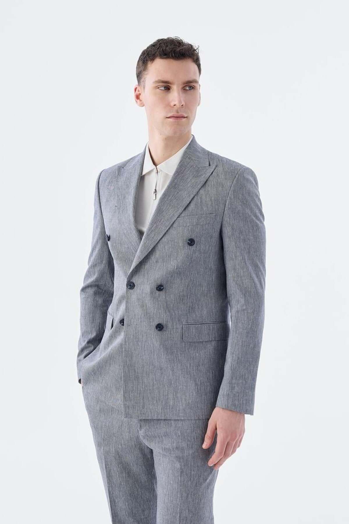 جاکامن کت و شلوار کتانی ترکیبی باریک آبی ناوی