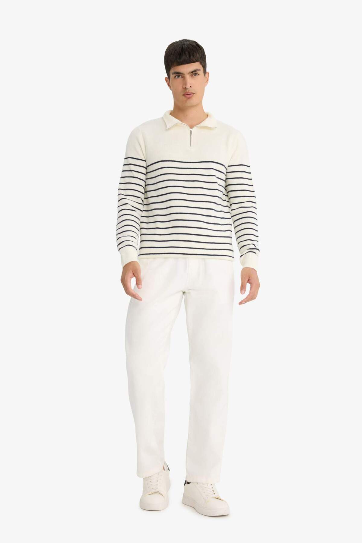 دفاکتو ژاکت بافتنی راه راه نیم زیپ استاندارد F1522AX25AU