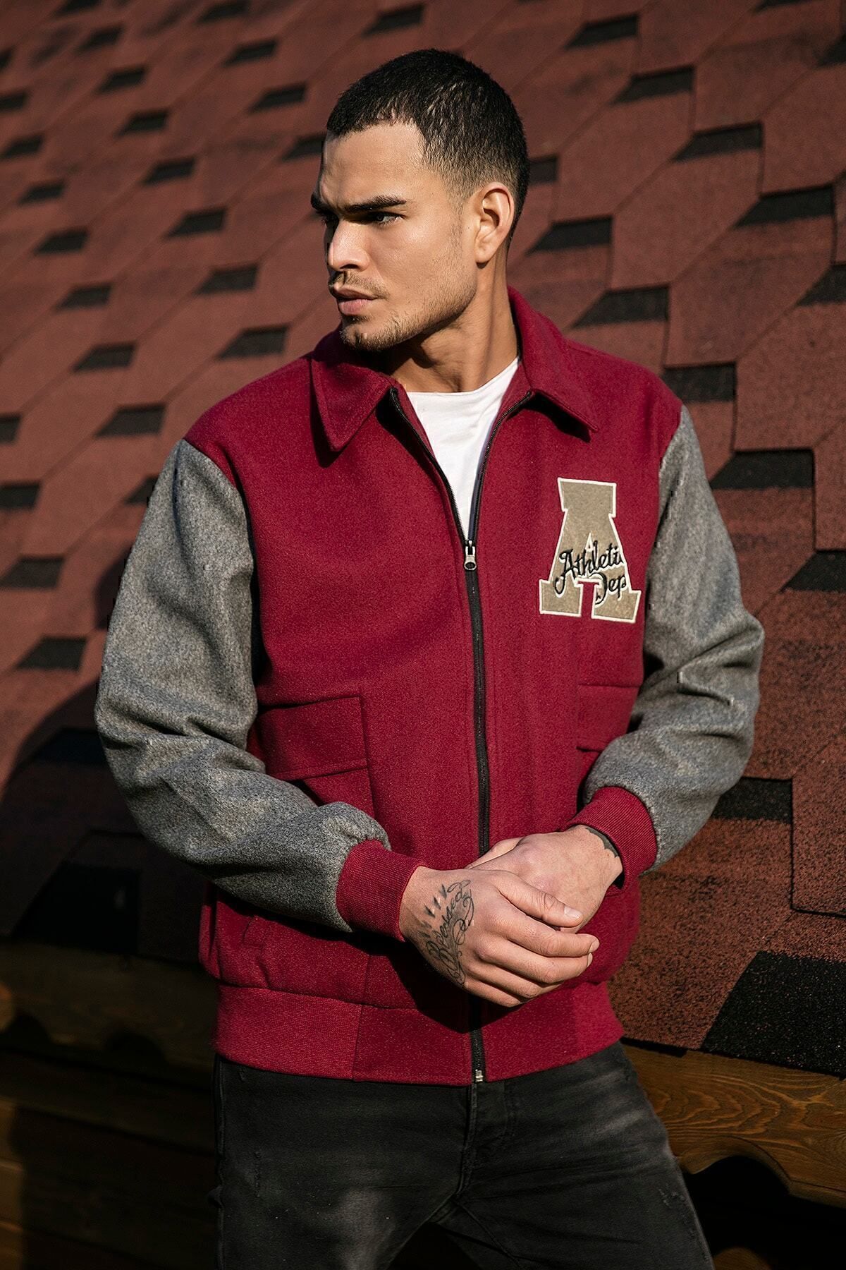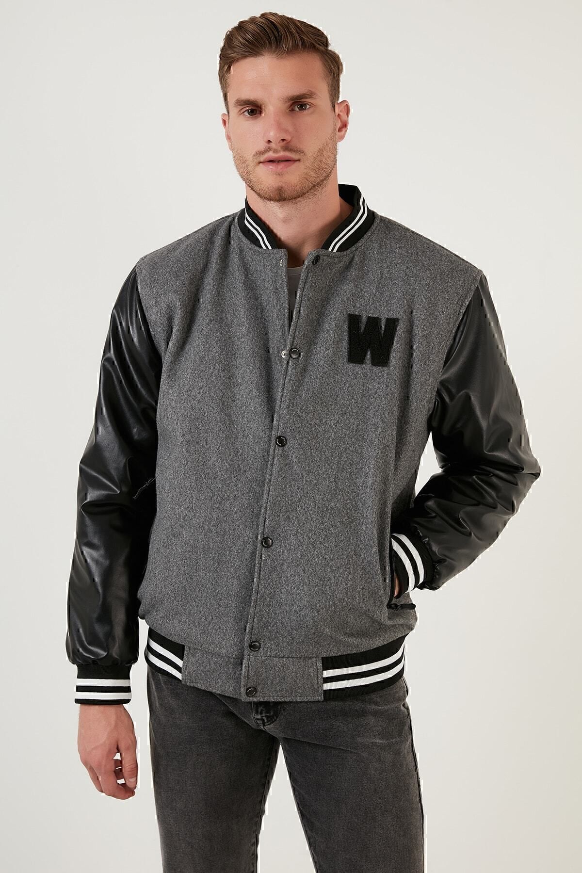 بوراتی کاپشن بامبر یقه کالج کاپشن مردانه با جزئیات چرم و نشان 5715985