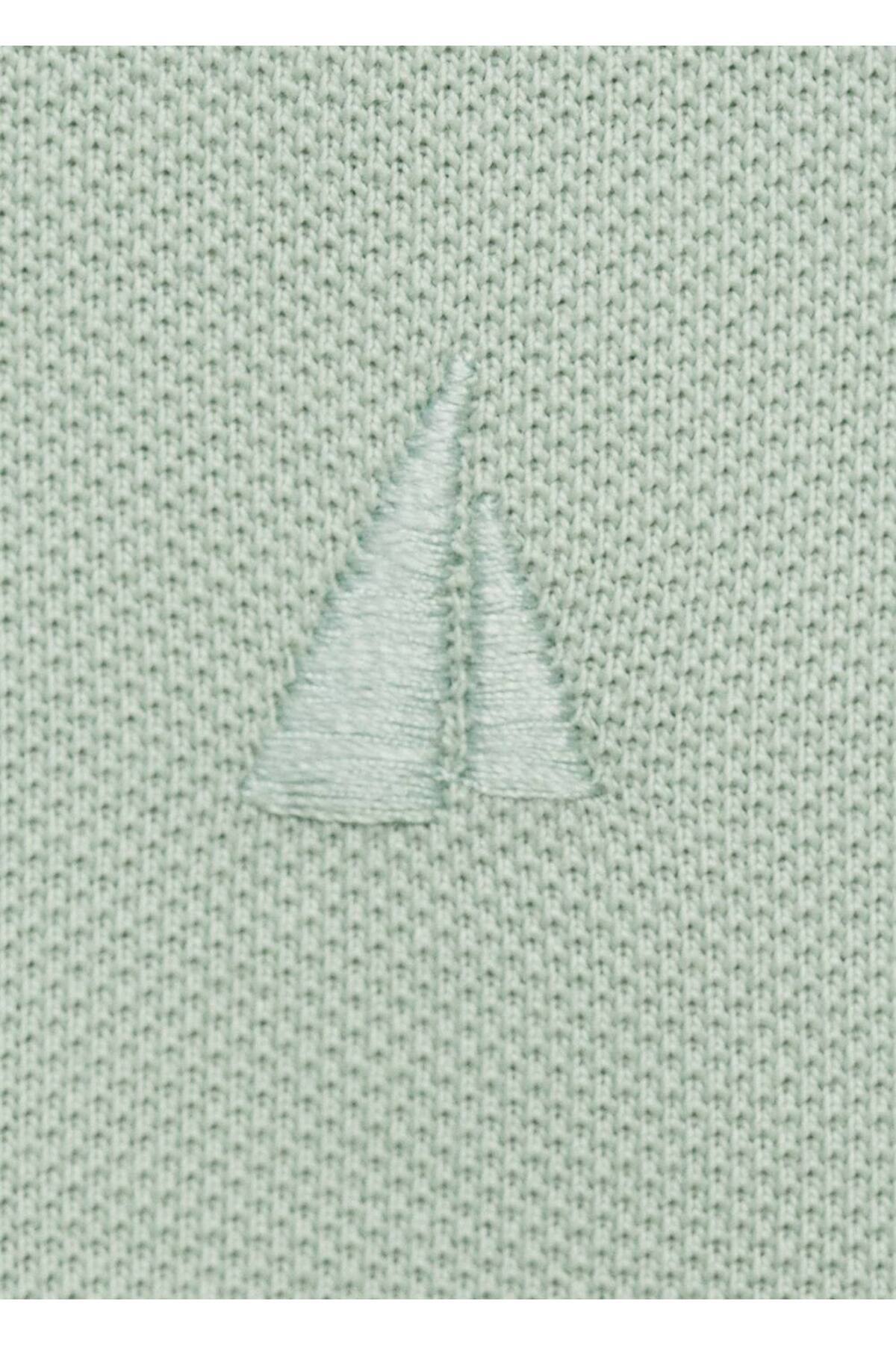 — javier8. ۱۰۰٪ پنبه، پارچه پیکه، طرح ساده، گلدوزی روی سینه، یقه پولو دکمهدار، آستین کوتاه.