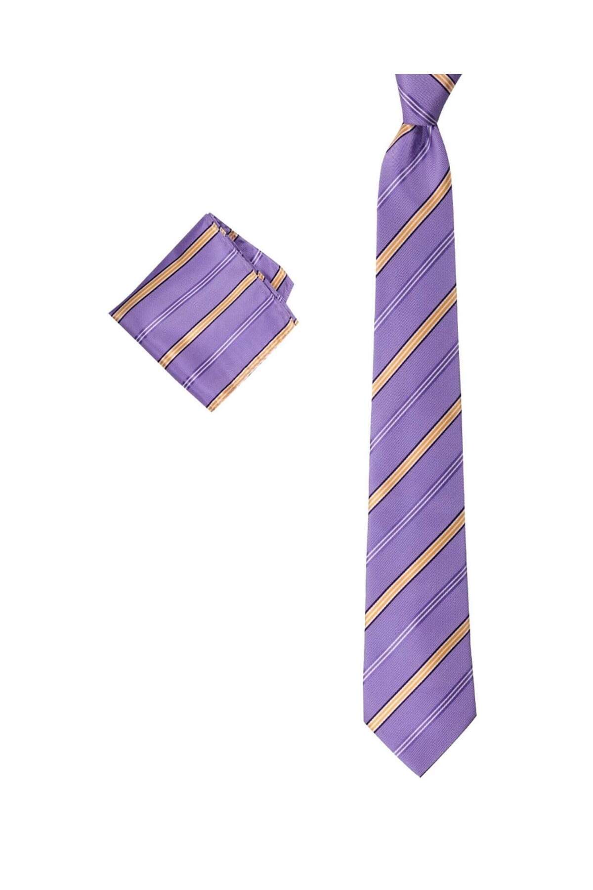 کراوات یاسی با پوشت گردن راه راه ۸ سانتیمتری زرد، سرمهای، سفید مردانه راه راه | 1001 Kravat KMZ0005