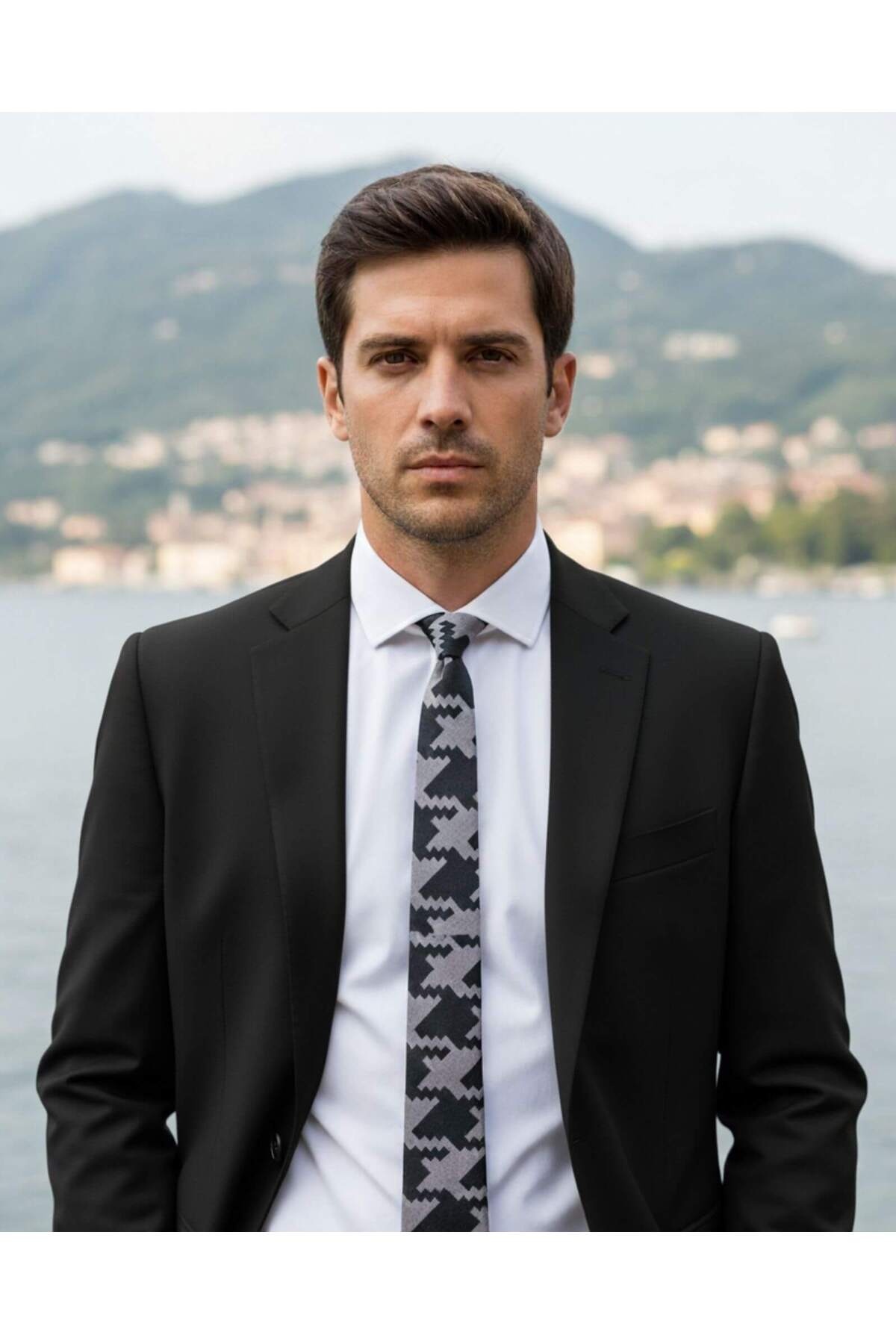 کراوات ابریشمی راه راه ۷.۵ سانتیمتری مشکی، سفید، خاکستری، یاسی مردانه راه راه | 1001 Kravat KS0015