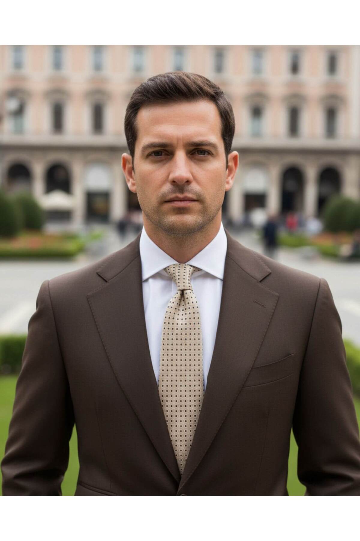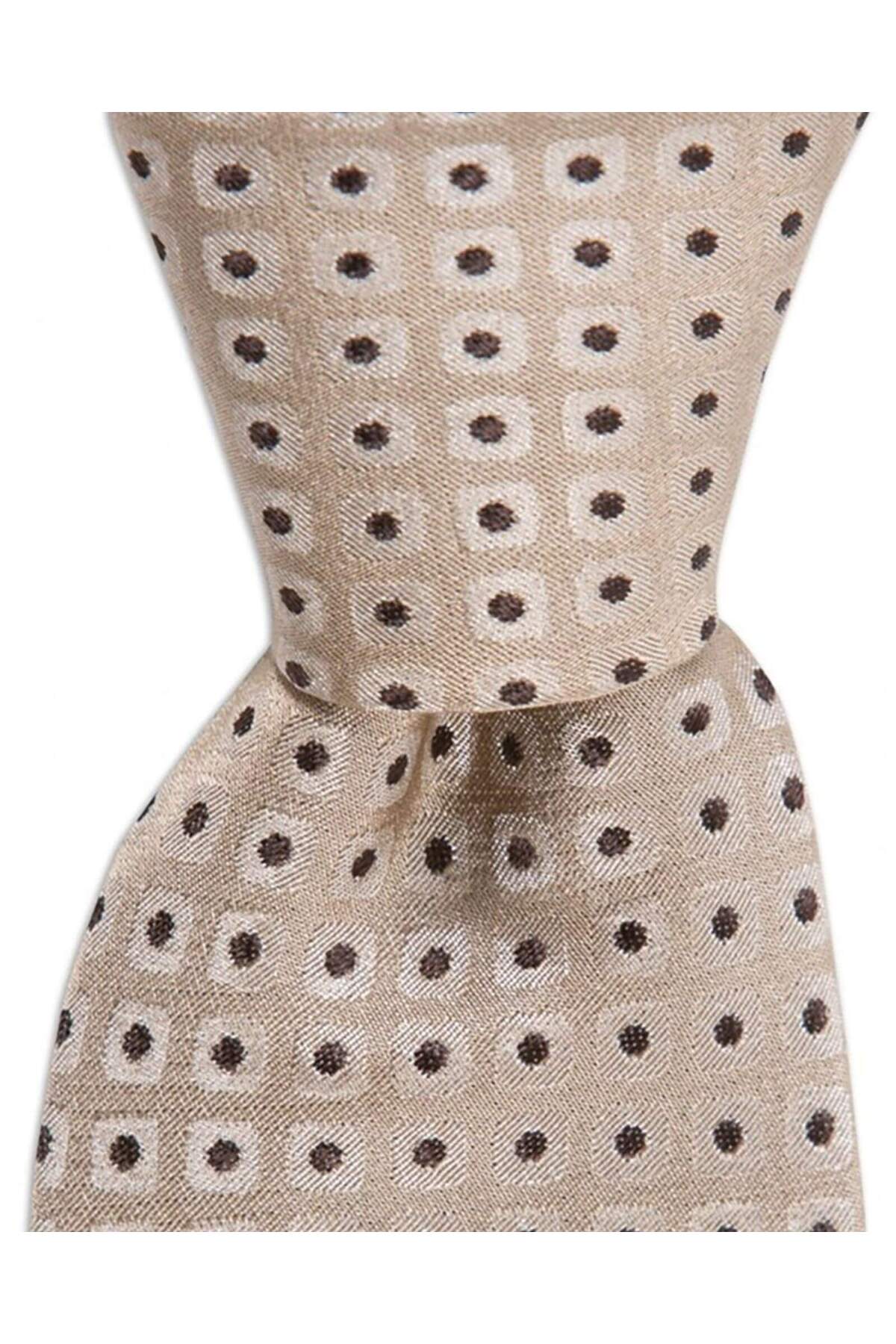 کراوات ابریشمی کلاسیک بژ عرض ۸ سانتیمتر با طرح قهوهای مردانه خال خالی | 1001 Kravat KS0041
