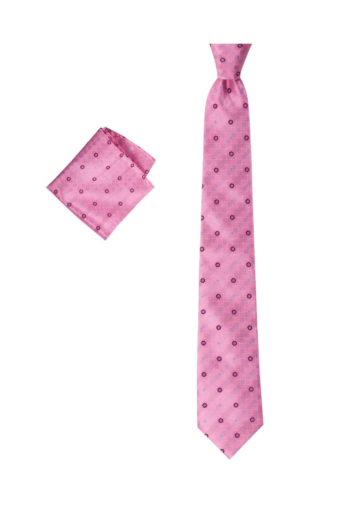 ست هدیه مردانه با پوشت گردن، کراوات صورتی و دکمه سرآستین مردانه راسته | 1001 Kravat T11