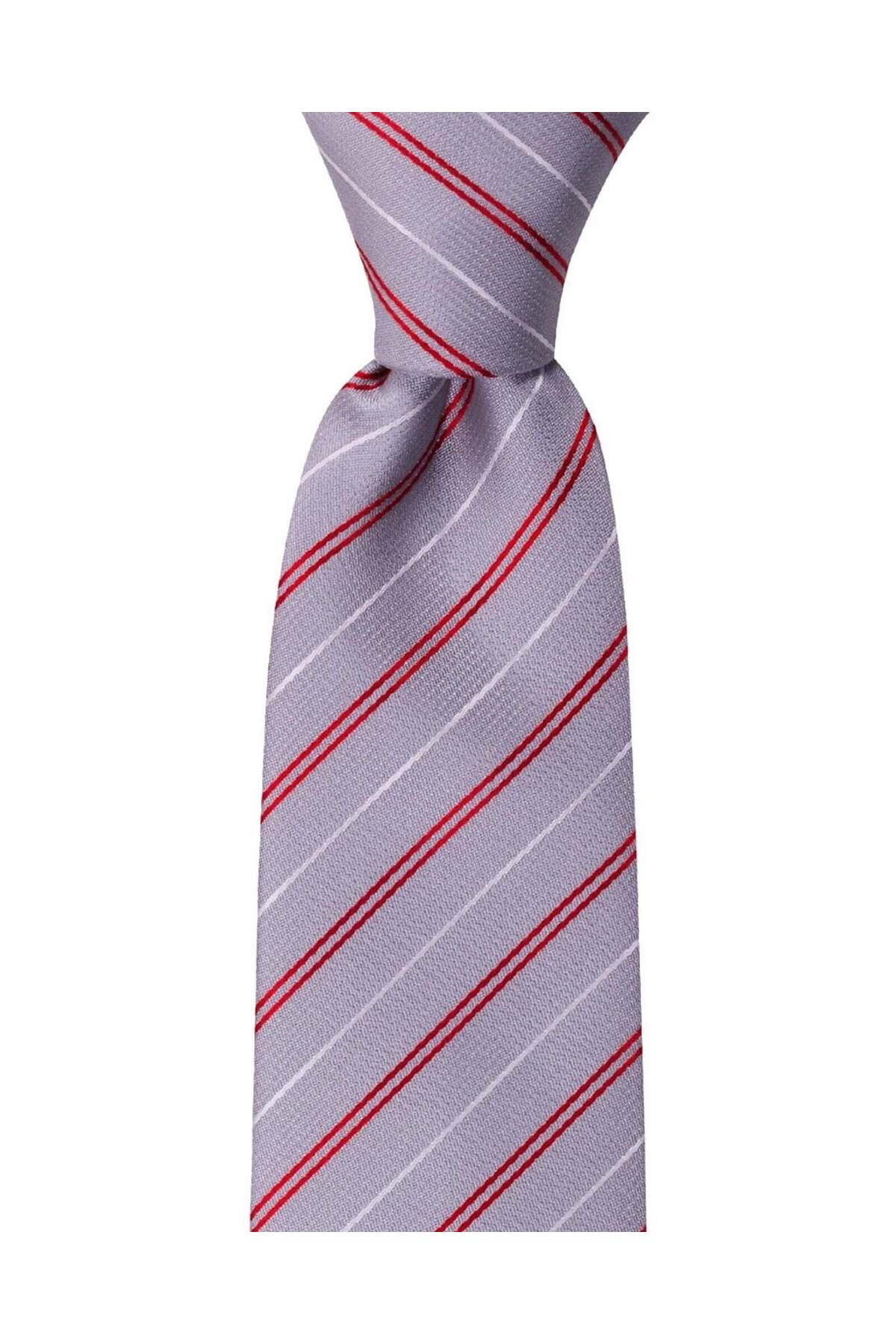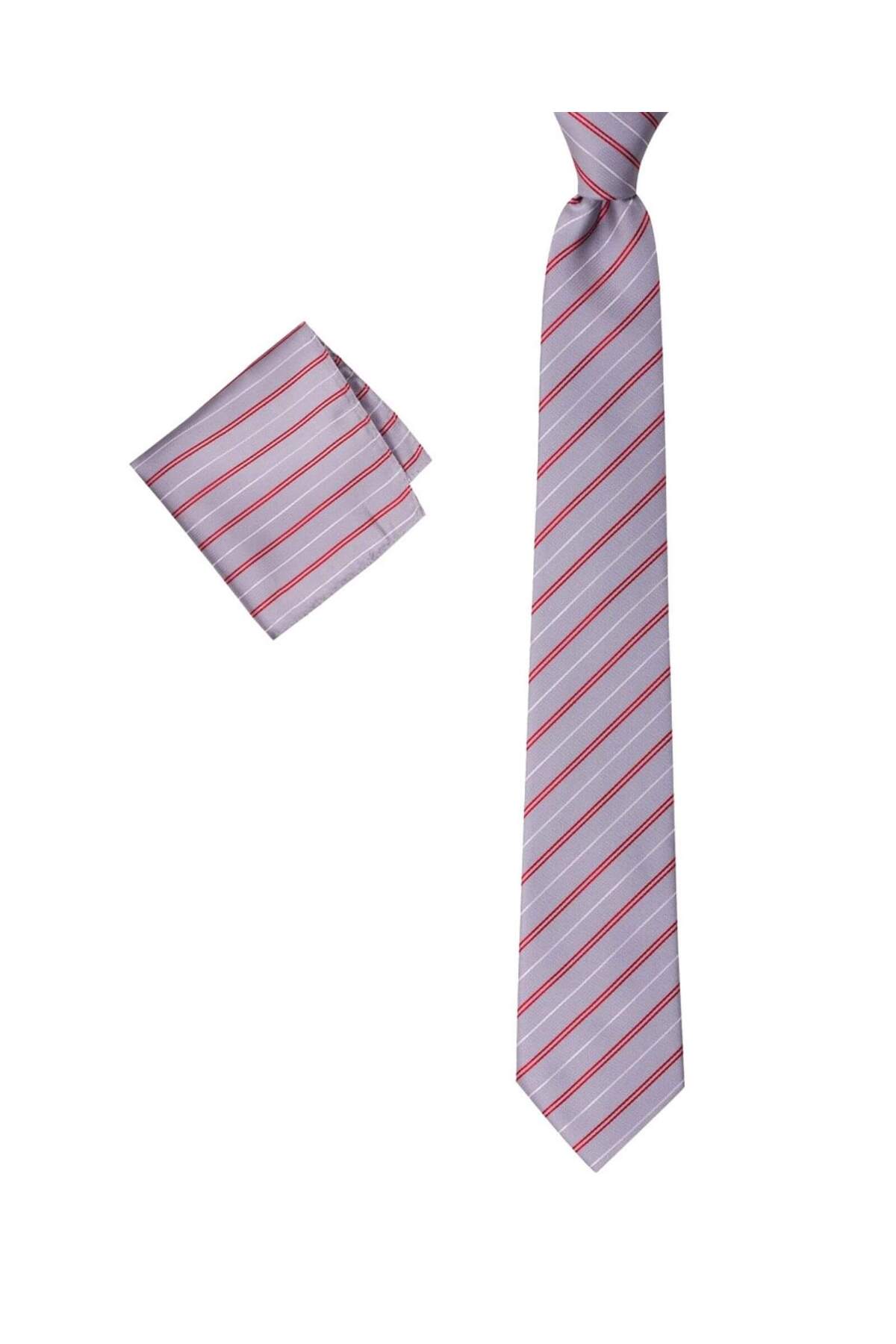 ست اکسسوری هدیه مردانه با پوشت گردن و کراوات و دکمه سرآستین خاکستری مردانه راه راه | 1001 Kravat T12