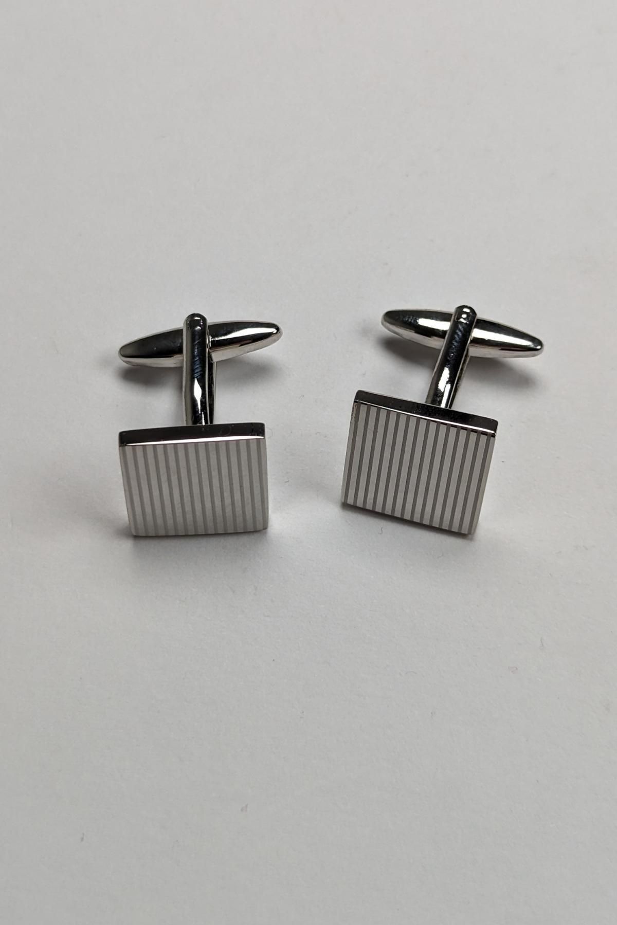 ست هدیه مردانه با پوشت گردن، کراوات خاکستری و دکمه سرآستین مردانه راسته | 1001 Kravat T11