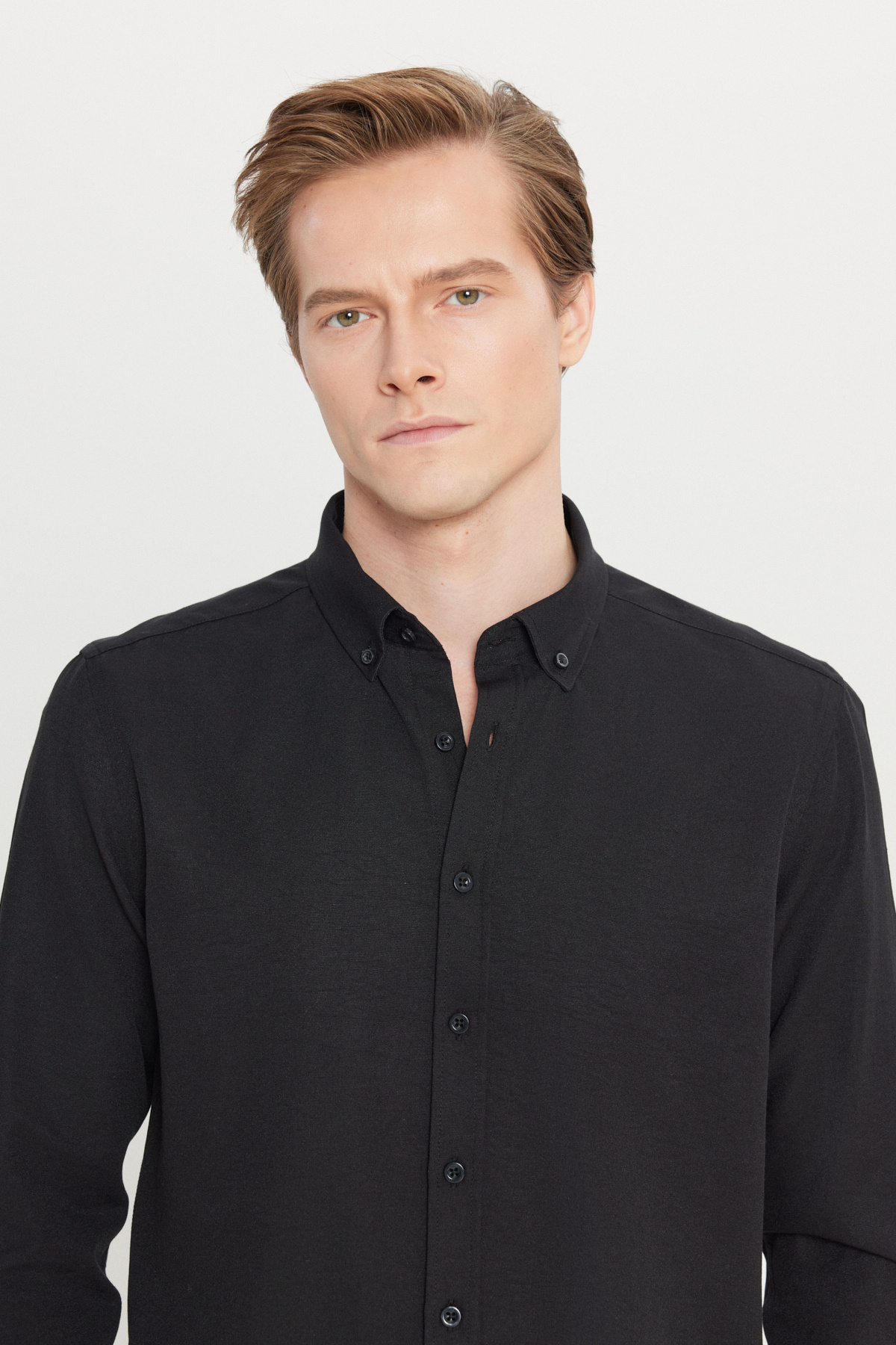 خرید اینترنتی پیراهن مردانه آکسفورد، نخی، جذب عرق، مدل Easy-Iron، مشکی، یقه دکمه‌دار، فیت باریک (مدل باریک) برند آلتین ییدلیز کلاسیکس AC&Co / Altınyıldız Classics اورجینال از Altınyıldız Classics نمایندگی و فروشگاه معتبر ترکیه