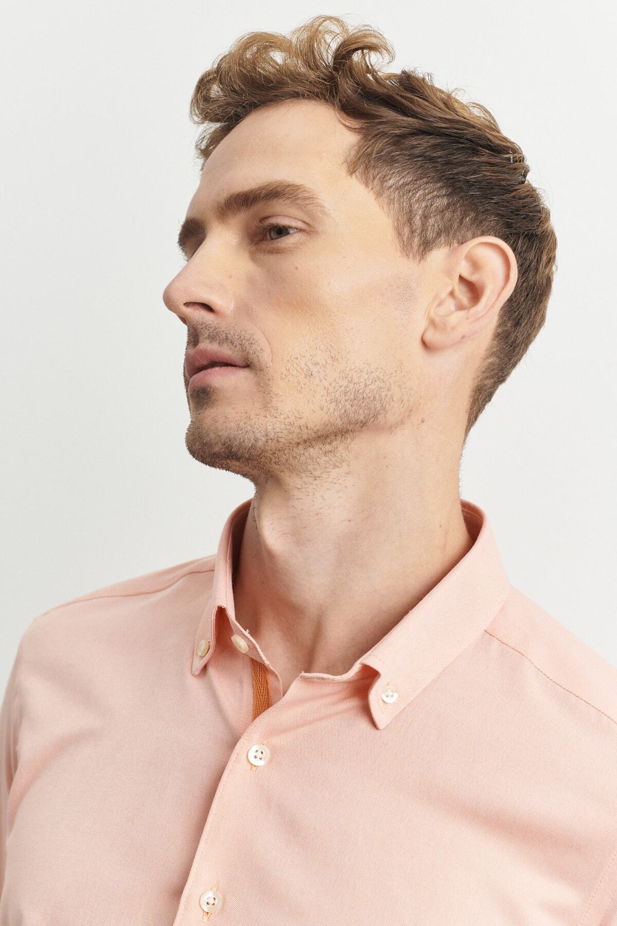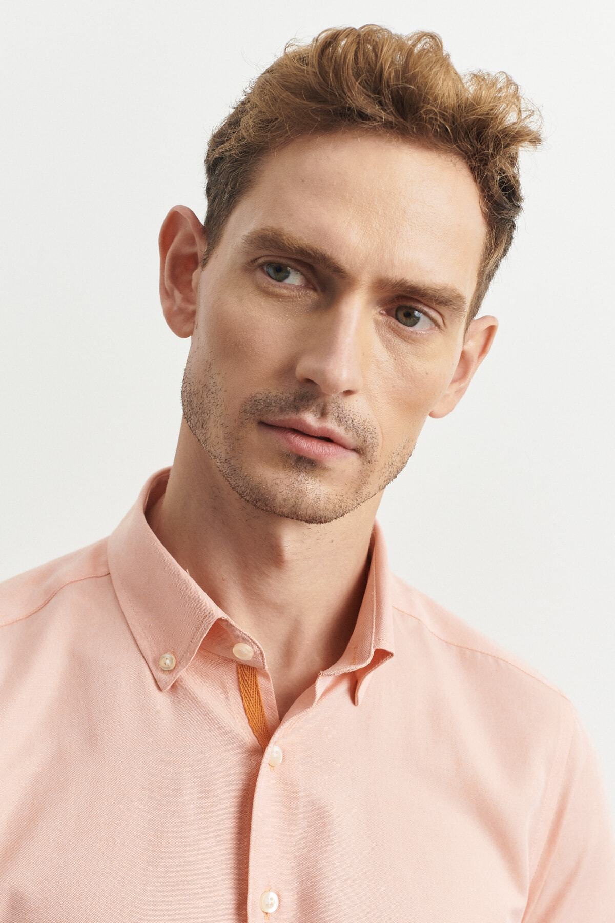 خرید اینترنتی پیراهن مردانه آستین بلند آکسفورد، یقه دکمه مخفی نخی، باریک و برشدار، نارنجی برند آلتین ییدلیز کلاسیکس AC&Co / Altınyıldız Classics اورجینال از Altınyıldız Classics نمایندگی ترکیه