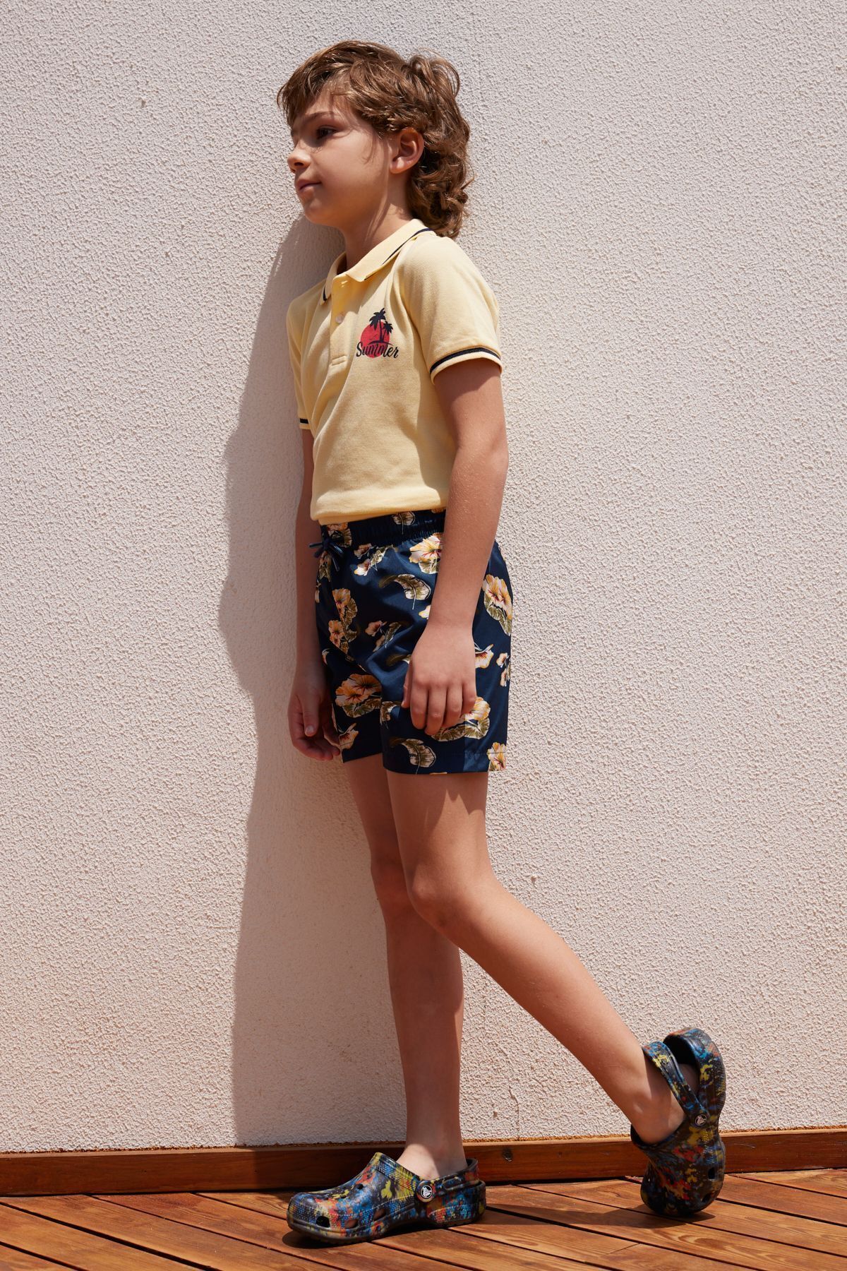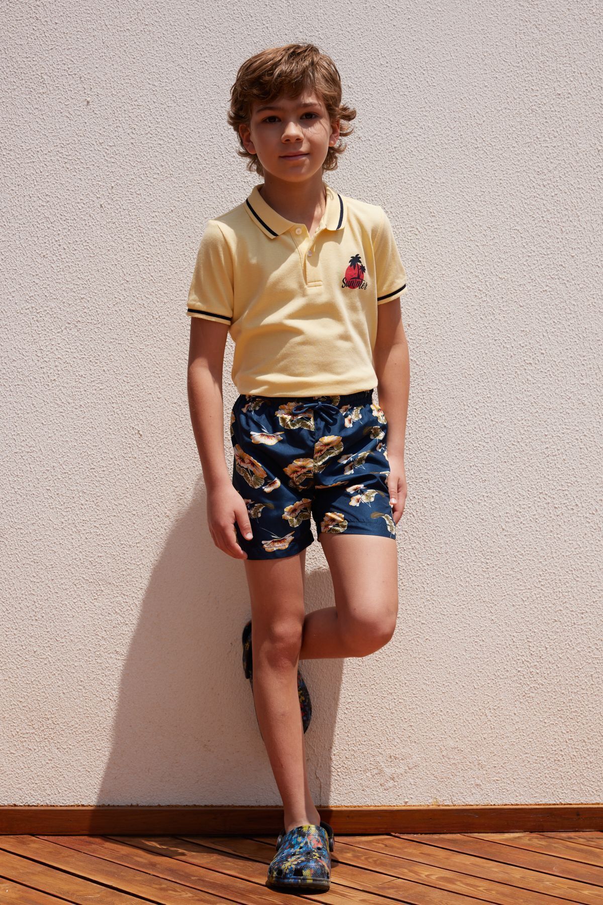 خرید اینترنتی شلوارک شنا بچهگانه مردانه طرحدار، سریع خشکشونده، آبی سرمهای و زرد، سایز استاندارد، برش معمولی برند آلتین ییدلیز کلاسیکس AC&Co / Altınyıldız Classics اورجینال از Altınyıldız Classics نمایندگی ترکیه