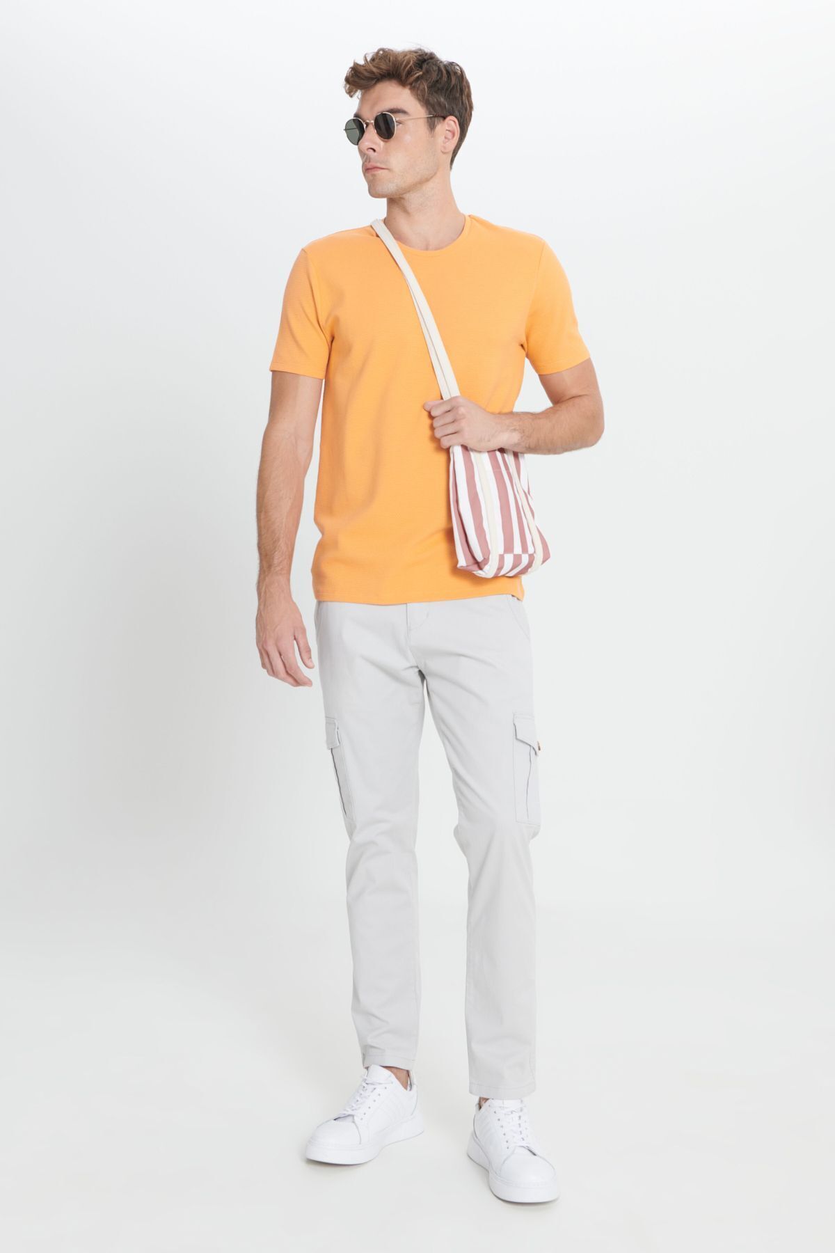 خرید اینترنتی تیشرت مردانه یقه گرد طرح دار، طرح نارنجی و اسلیم فیت، برش باریک، نرم و انعطافپذیر برند آلتین ییدلیز کلاسیکس AC&Co / Altınyıldız Classics اورجینال از Altınyıldız Classics نمایندگی ترکیه