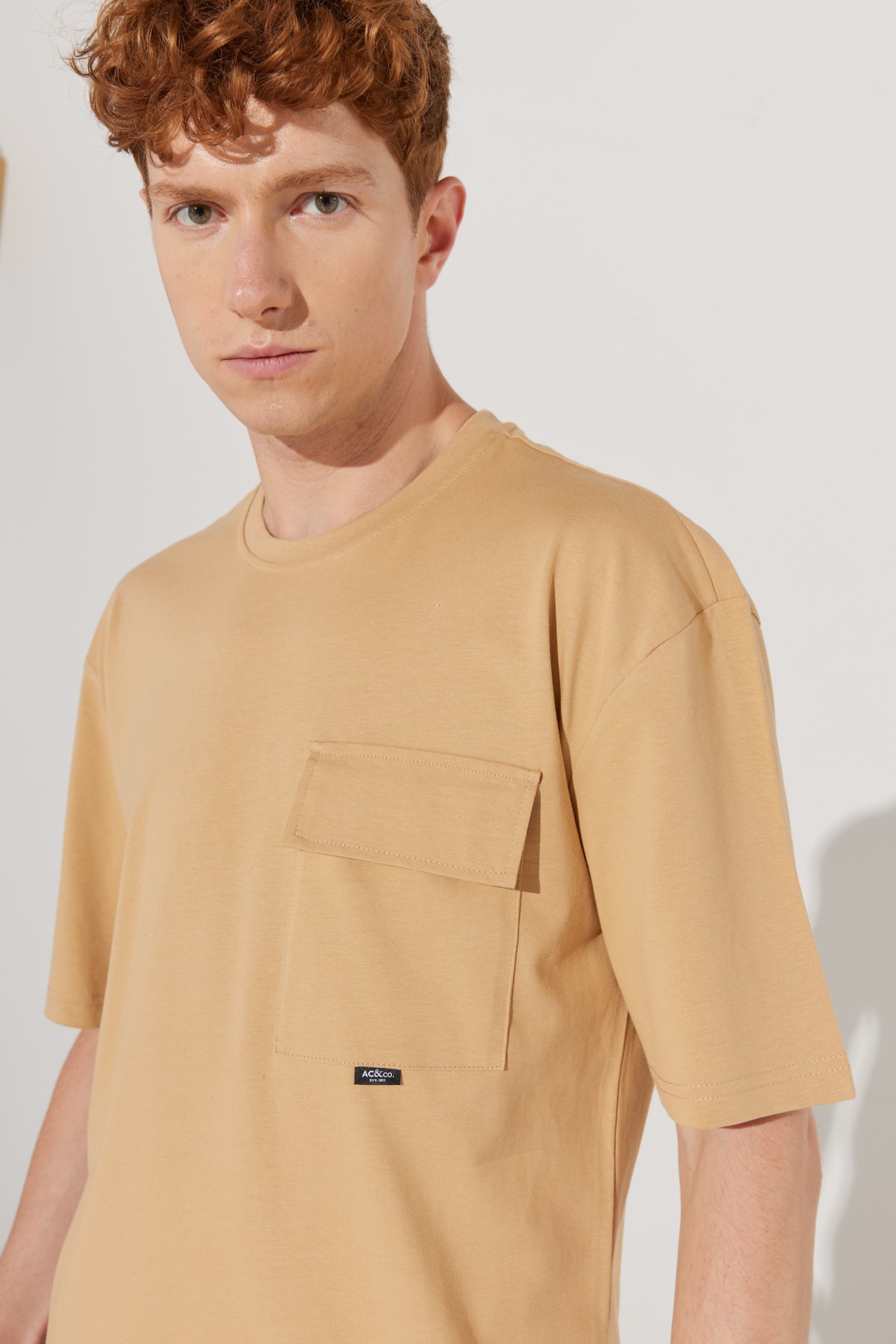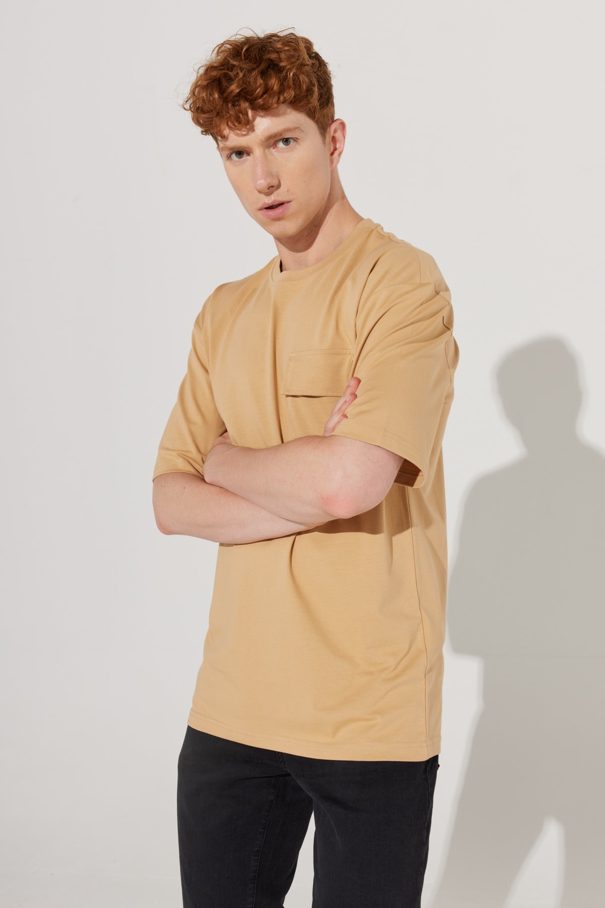 خرید اینترنتی تی‌شرت مردانه یقه گرد گشاد و گشاد طرح شتری سایز بزرگ جیب‌دار برند آلتین ییدلیز کلاسیکس AC&Co / Altınyıldız Classics اورجینال از Altınyıldız Classics نمایندگی ترکیه