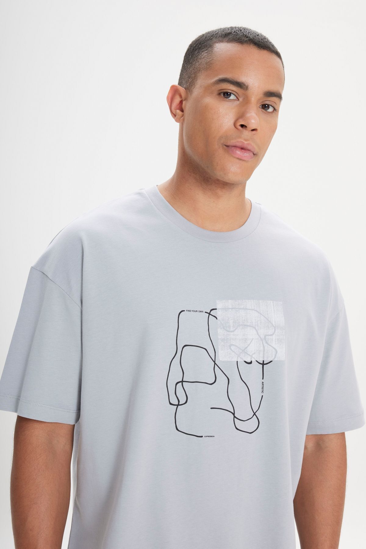 خرید اینترنتی تیشرت مردانه یقه گرد گشاد خاکستری سایز بزرگ، ۱۰۰٪ پنبه، طرحدار برند آلتین ییدلیز کلاسیکس AC&Co / Altınyıldız Classics اورجینال از Altınyıldız Classics نمایندگی ترکیه