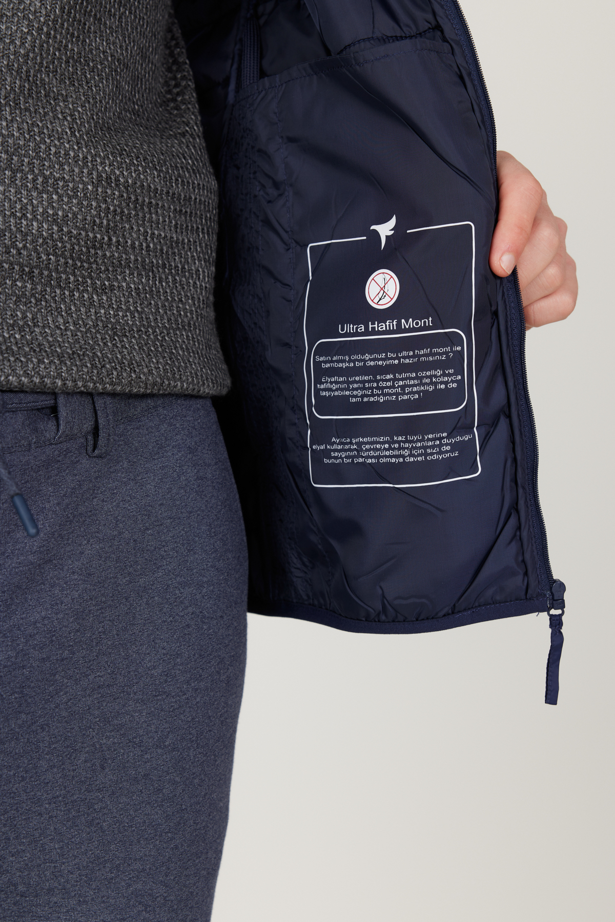 خرید اینترنتی جلیقه بادی مردانه آبی سرمهای، ضد باد و قابل حمل، از جنس الیاف گرم، فوق سبک و دارای کیف برند آلتین ییدلیز کلاسیکس AC&Co / Altınyıldız Classics اورجینال از Altınyıldız Classics نمایندگی ترکیه