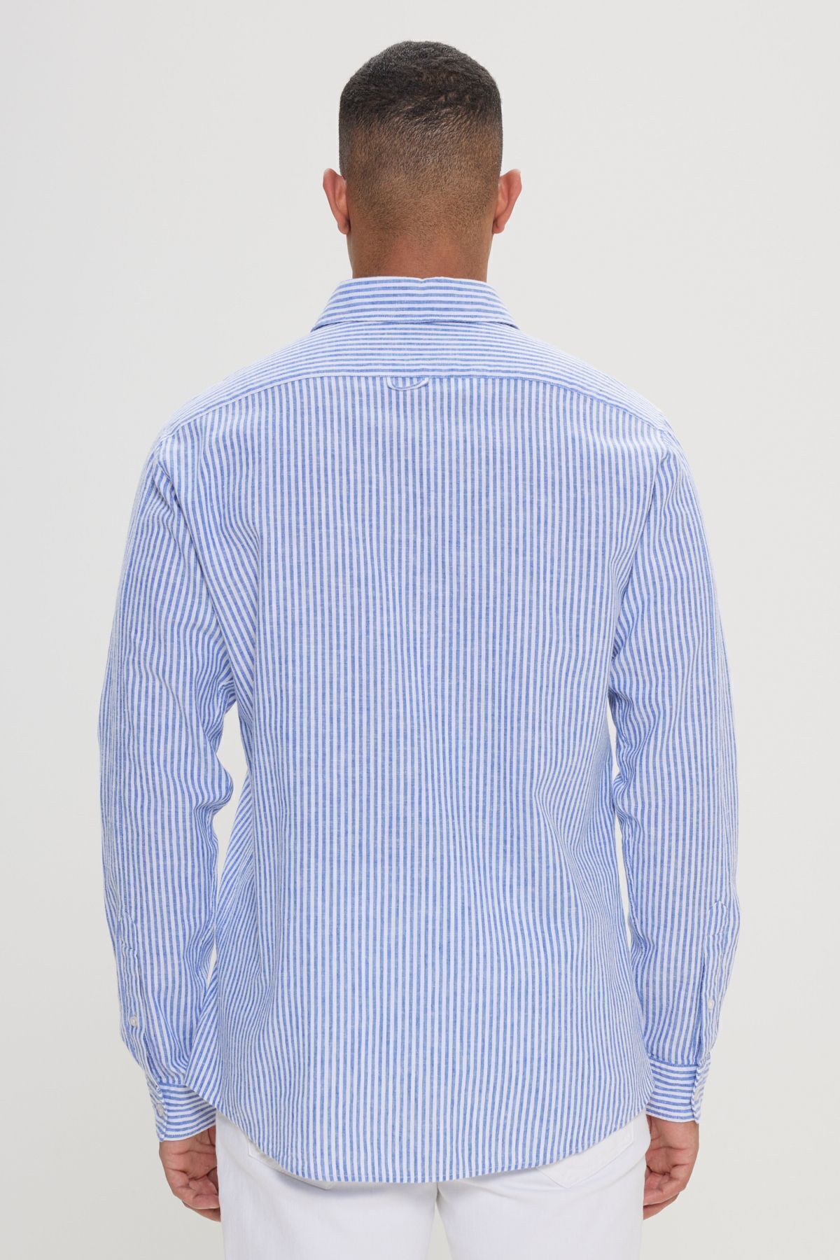 خرید اینترنتی پیراهن مردانه کتانی آبی و سفید، یقه راه راه کلاسیک، برش آرام برند آلتین ییدلیز کلاسیکس AC&Co / Altınyıldız Classics اورجینال از Altınyıldız Classics نمایندگی و فروشگاه معتبر ترکیه