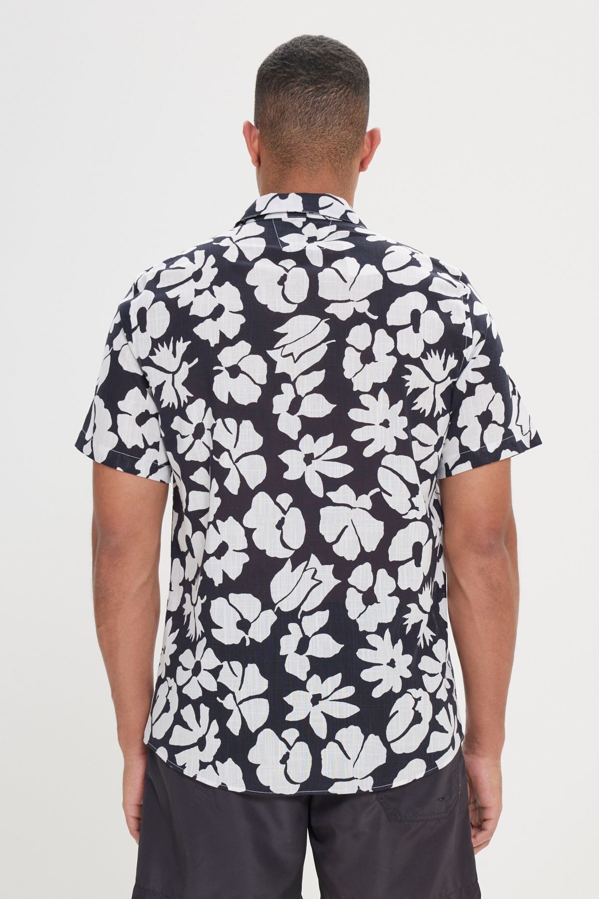 خرید اینترنتی پیراهن مردانه آستین کوتاه طرح‌دار یقه کوبایی باریک و ۱۰۰٪ پنبه، مشکی و سفید برند آلتین ییدلیز کلاسیکس AC&Co / Altınyıldız Classics اورجینال از Altınyıldız Classics نمایندگی ترکیه