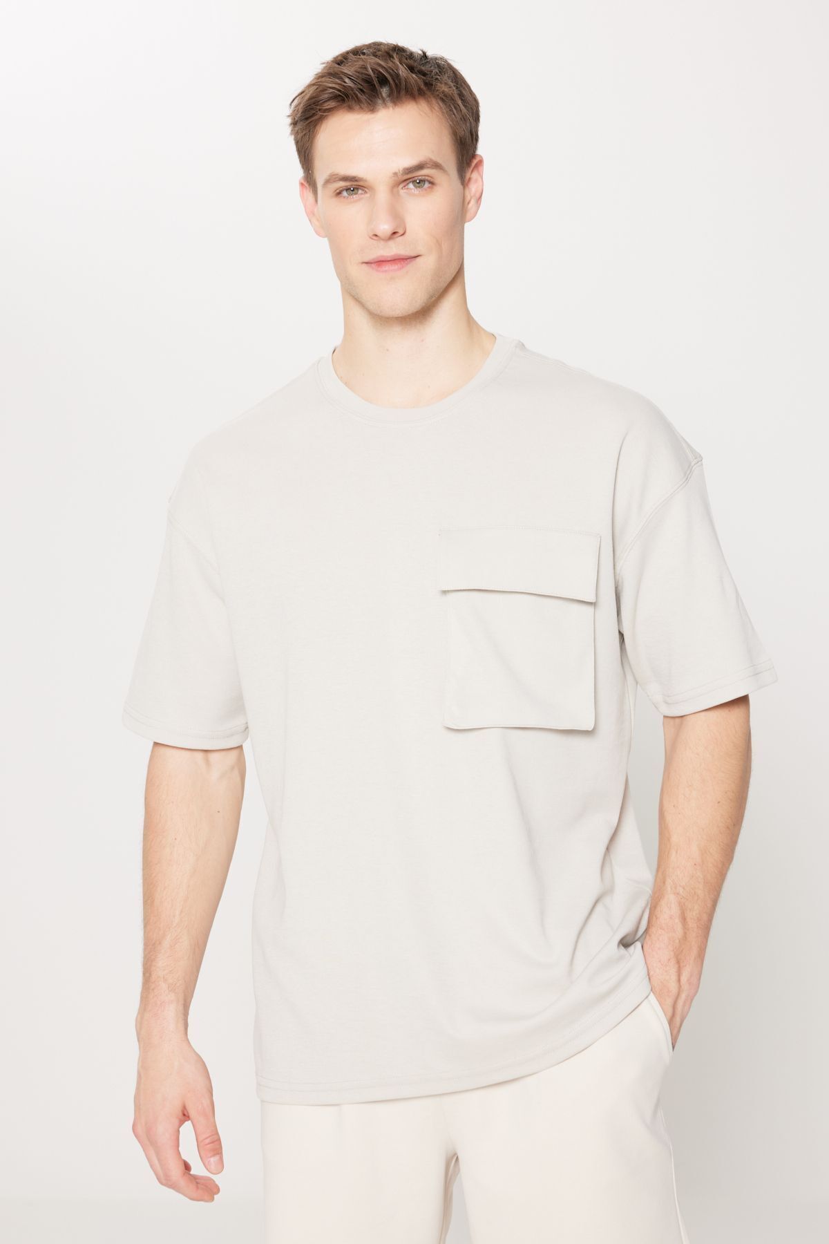 خرید اینترنتی تیشرت یقه گرد گشاد نخی خاکستری مردانه برند آلتین ییدلیز کلاسیکس AC&Co / Altınyıldız Classics اورجینال از Altınyıldız Classics نمایندگی ترکیه