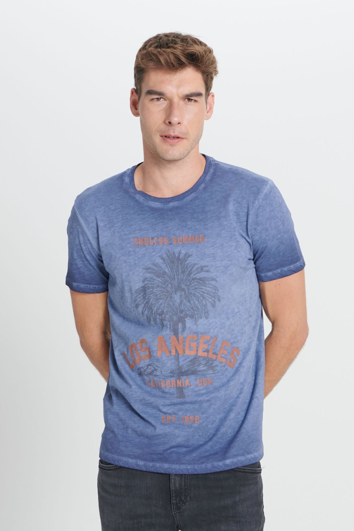 خرید اینترنتی تیشرت یقه گرد طرحدار ۱۰۰٪ پنبهای مردانه ایندیگو استاندارد فیت با برش معمولی برند آلتین ییدلیز کلاسیکس AC&Co / Altınyıldız Classics اورجینال از Altınyıldız Classics نمایندگی ترکیه