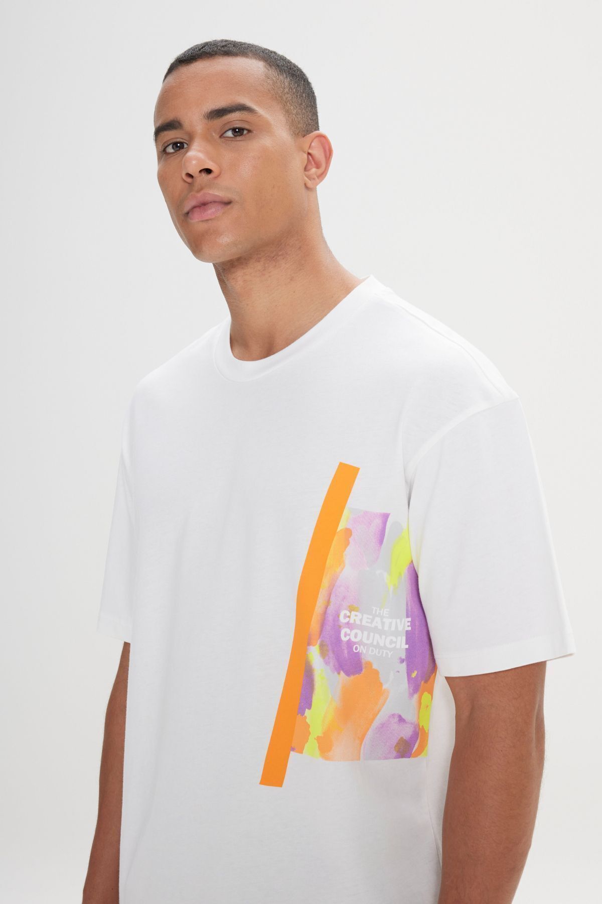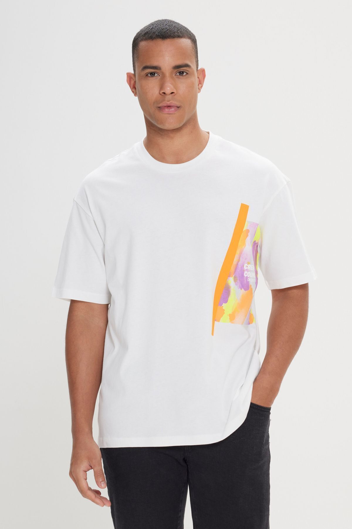 خرید اینترنتی تیشرت یقه گرد طرحدار سفید مردانه، 100% پنبه، بافت نرم برند آلتین ییدلیز کلاسیکس AC&Co / Altınyıldız Classics اورجینال از Altınyıldız Classics نمایندگی ترکیه