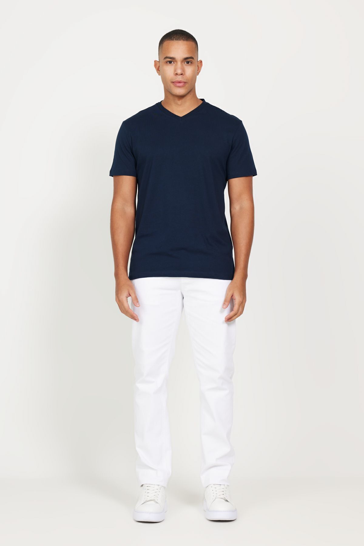 خرید اینترنتی تیشرت مردانه طرح اسلیم فیت مدل Narrow Cut نخی سایز 2-سفید سرمهای برند آلتین ییدلیز کلاسیکس AC&Co / Altınyıldız Classics اورجینال از Altınyıldız Classics نمایندگی ترکیه