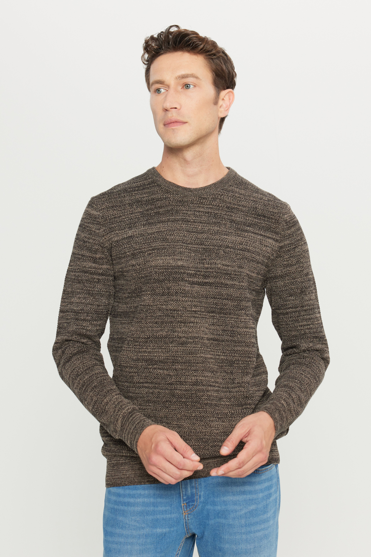 خرید اینترنتی ژاکت بافتنی مردانه قهوه‌ای-بژ، یقه گرد، برش معمولی، سایز استاندارد برند آلتین ییدلیز کلاسیکس AC&Co / Altınyıldız Classics اورجینال از Altınyıldız Classics نمایندگی و فروشگاه معتبر ترکیه