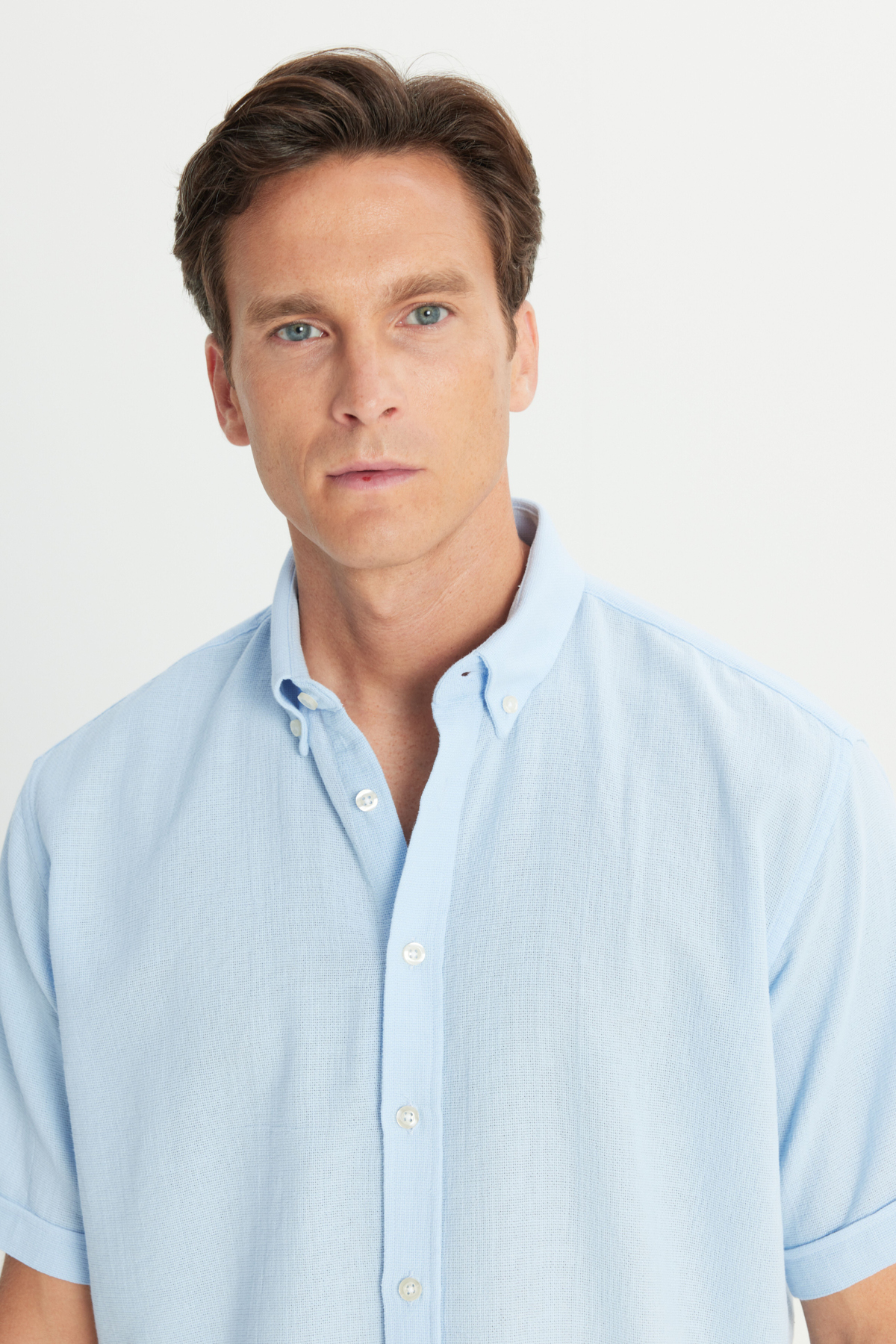 خرید اینترنتی پیراهن مردانه دکمه‌دار طرح کتان آبی روشن، ۱۰۰٪ پنبه، با بافتی راحت برند آلتین ییدلیز کلاسیکس AC&Co / Altınyıldız Classics اورجینال از Altınyıldız Classics نمایندگی و فروشگاه معتبر ترکیه
