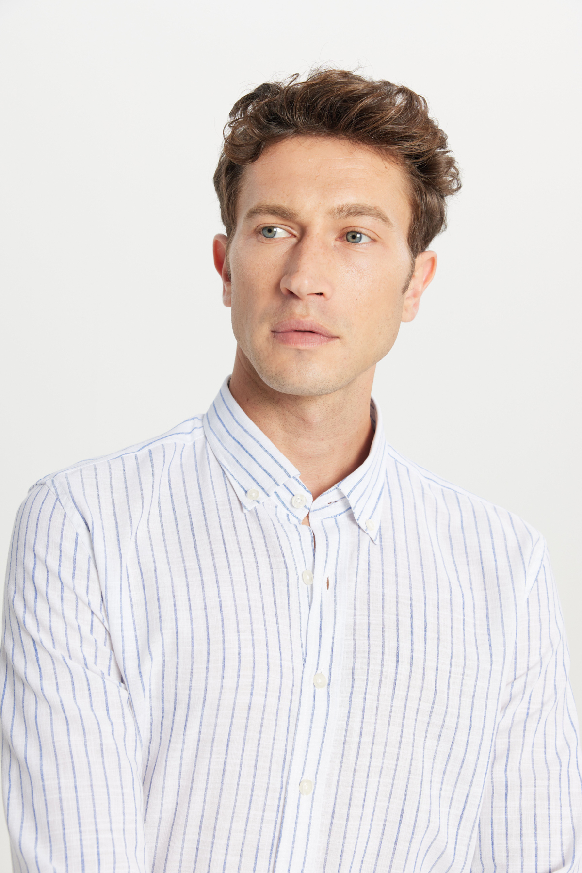 ۱۰۰٪ پنبه، بافتدار، سرمهای، بدون جیب، فیت باریک، یقه پیراهن دکمهدار، آستین بلند، سایز محصول: L، ابعاد مدل: قد: ۱.۸۹ سانتیمتر، وزن: ۸۰ کیلوگرم، پیراهن بافتدار یقه دکمهدار ۱۰۰٪ پنبهای Altınyıldız Classics/ACCo. مناسب برای ۴ فصل، کد محصول: ETE020252547LAC.