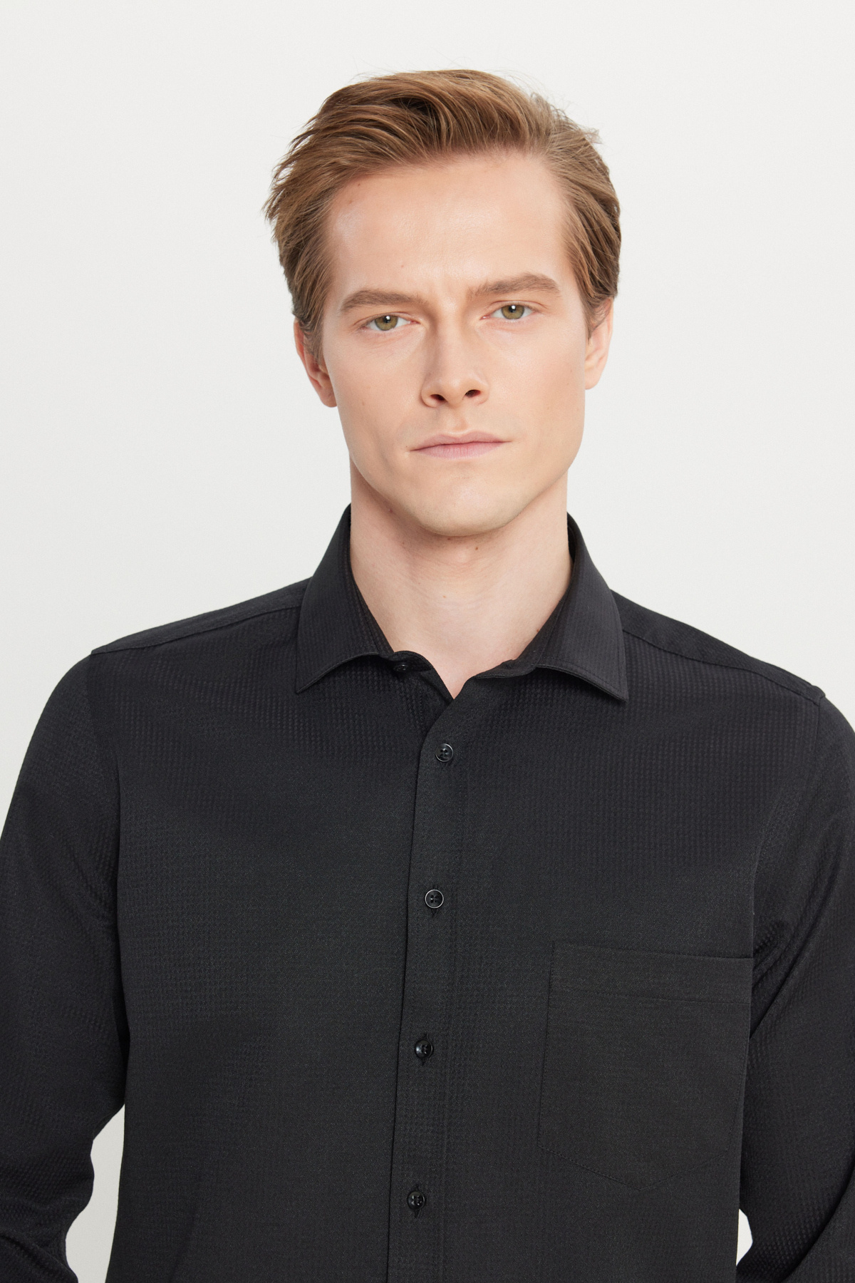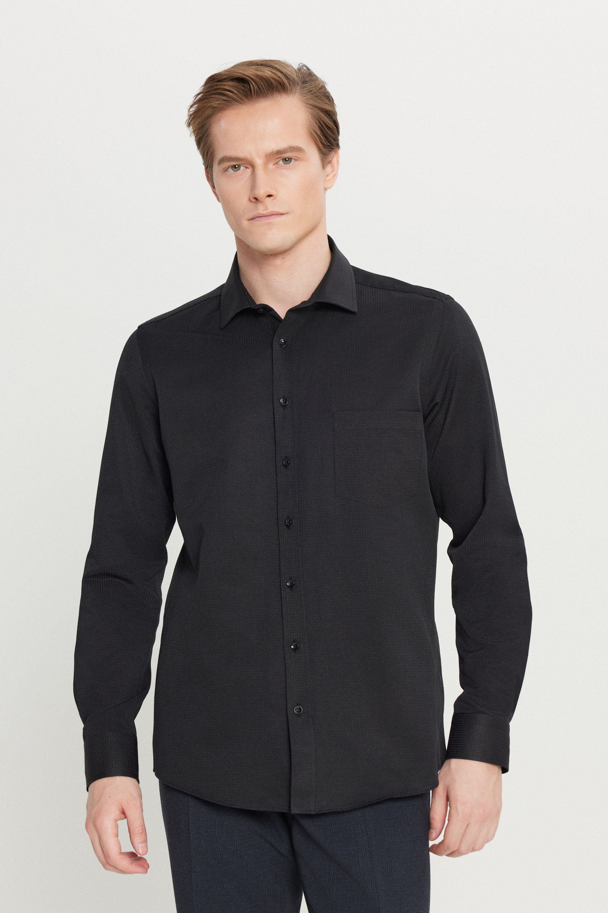 خرید اینترنتی پیراهن مردانه مشکی نخی طرحدار، یقه کلاسیک، جیبدار و طرحدار برند آلتین ییدلیز کلاسیکس AC&Co / Altınyıldız Classics اورجینال از Altınyıldız Classics نمایندگی ترکیه