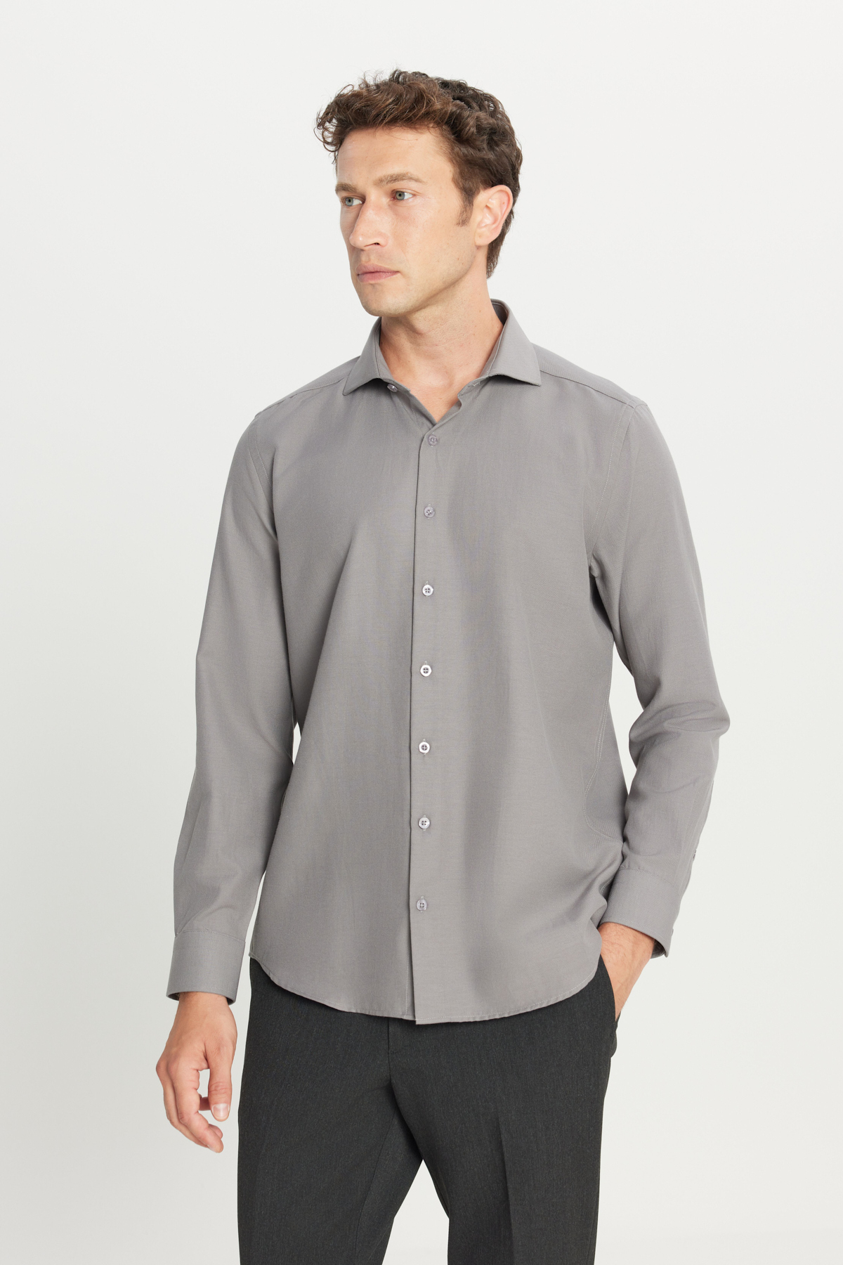 خرید اینترنتی پیراهن مردانه خاکستری طرحدار اسلیم فیت، یقه ایتالیایی کوچک، برش باریک، آکسفورد بافتدار برند آلتین ییدلیز کلاسیکس AC&Co / Altınyıldız Classics اورجینال از Altınyıldız Classics نمایندگی و فروشگاه معتبر ترکیه