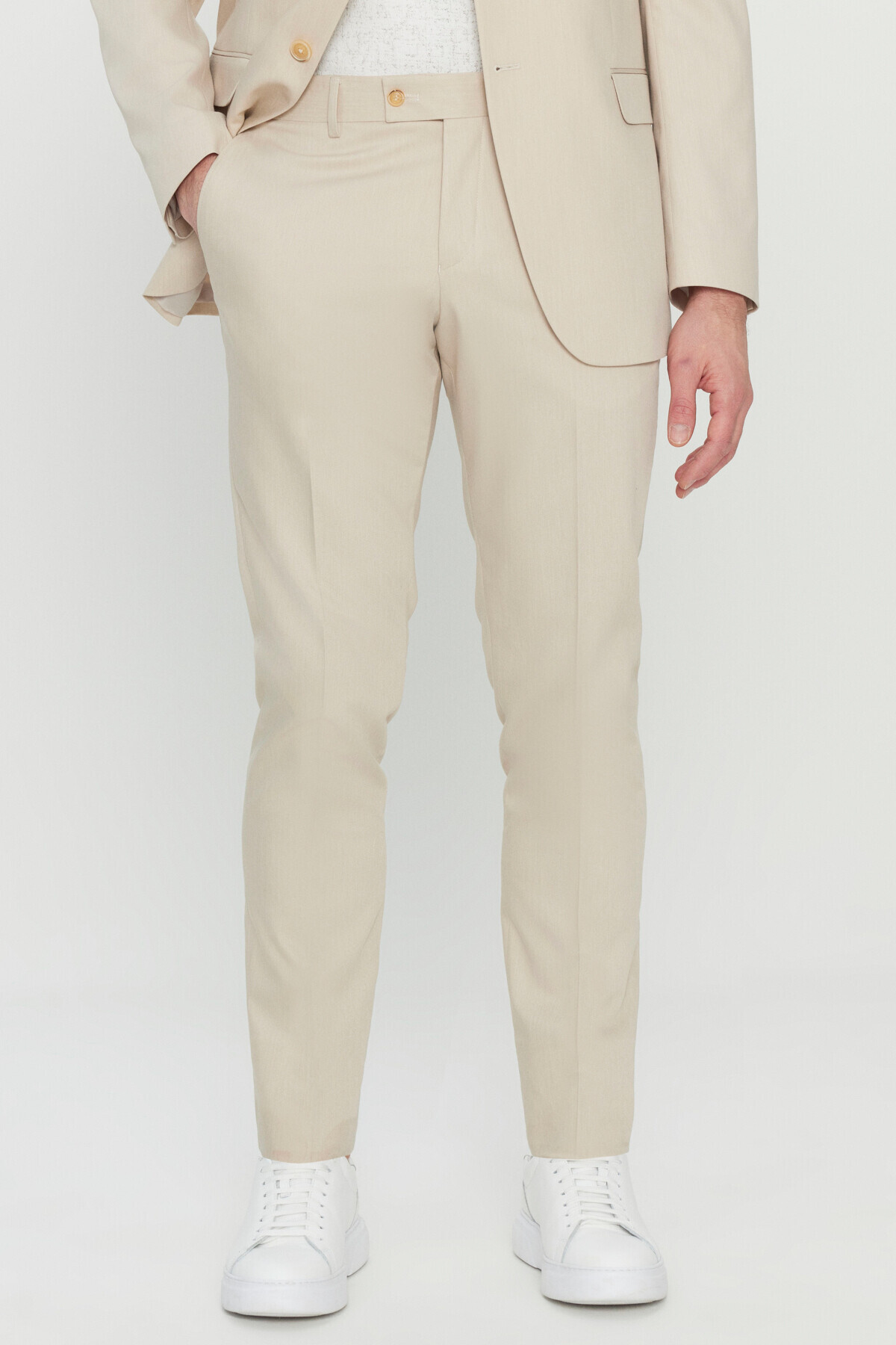 خرید اینترنتی کت و شلوار مردانه بژ اسلیم فیت، برش باریک، یقه برگردان، جیب دار برند آلتین ییدلیز کلاسیکس AC&Co / Altınyıldız Classics اورجینال از Altınyıldız Classics نمایندگی ترکیه