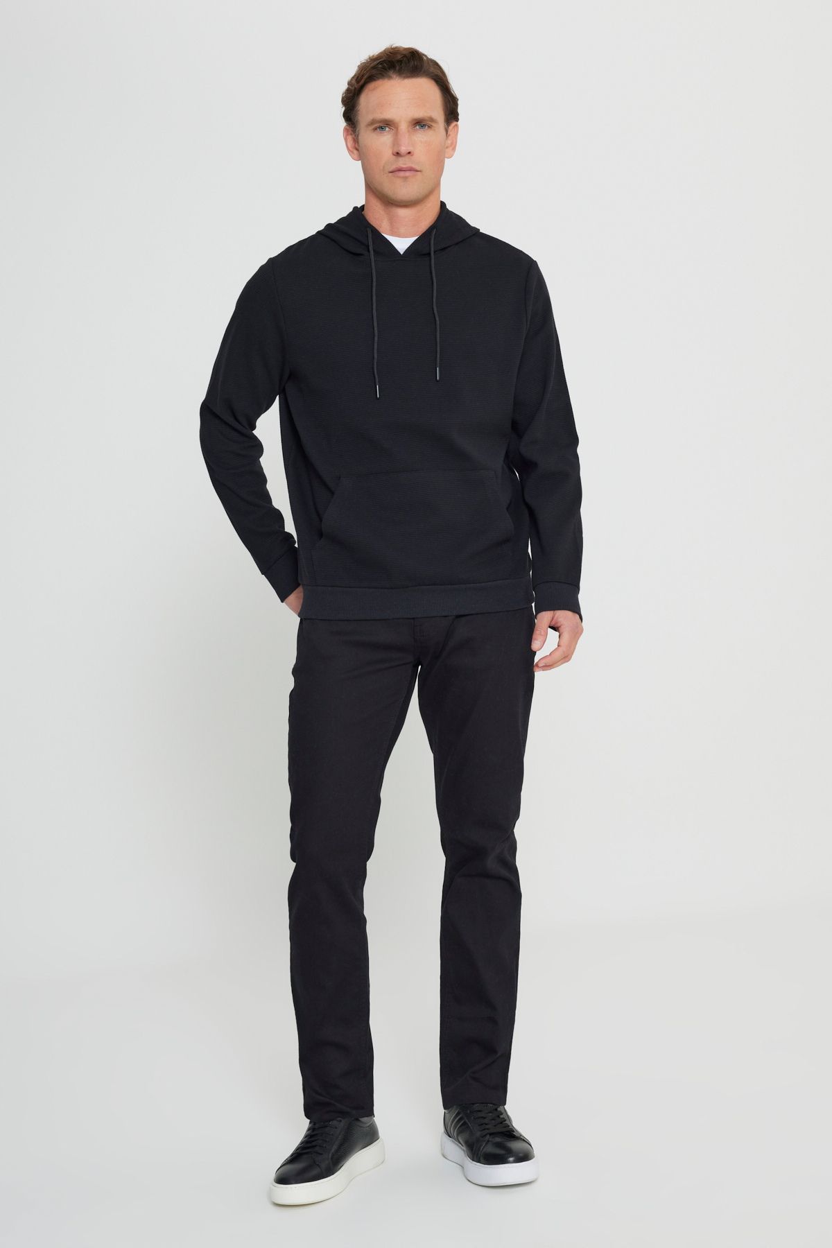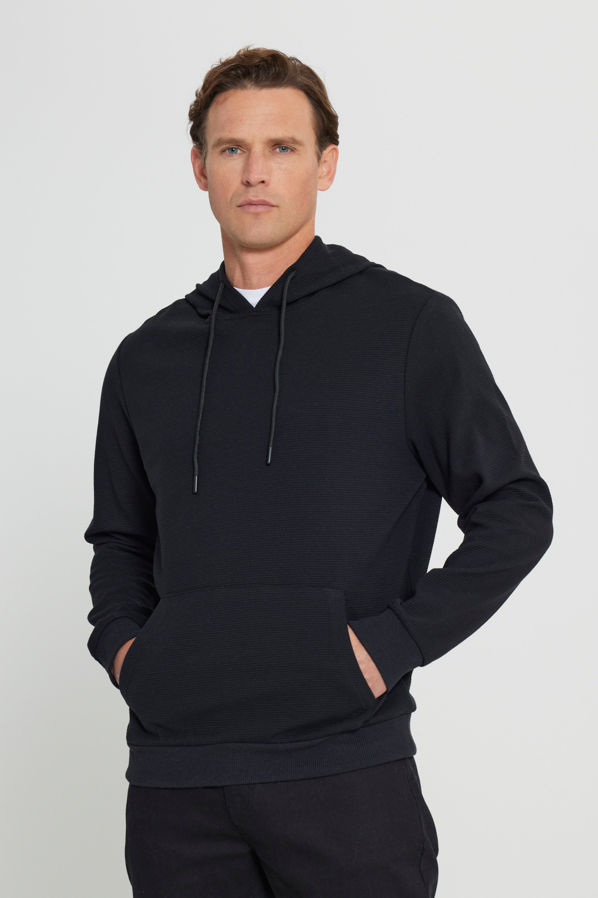 خرید اینترنتی سویشرت بافتدار مردانه مشکی دو نخی گرم، برش معمولی، کلاهدار، جیبدار برند آلتین ییدلیز کلاسیکس AC&Co / Altınyıldız Classics اورجینال از Altınyıldız Classics نمایندگی و فروشگاه معتبر ترکیه