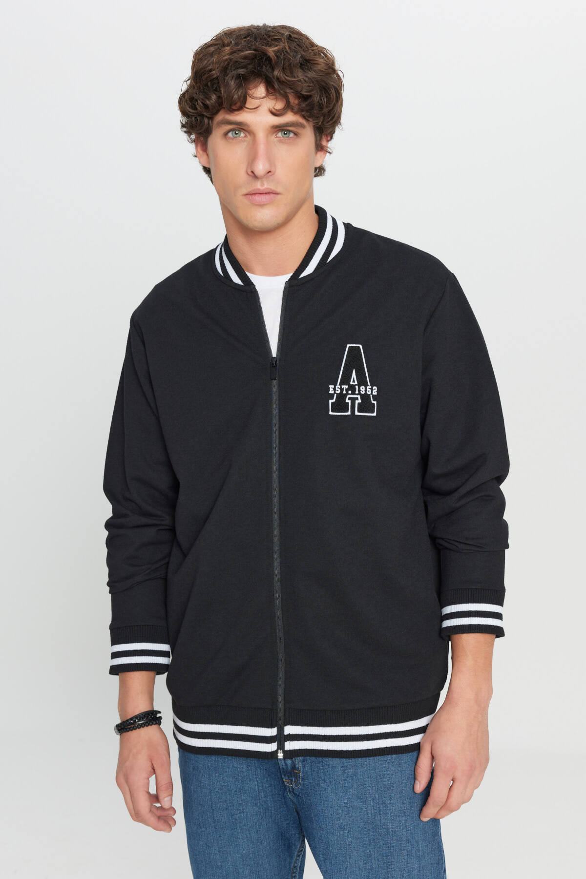 خرید اینترنتی ژاکت سویشرت مردانه مشکی دو نخی یقه کالج زیپدار با جیبهای کناری، سایز استاندارد برند آلتین ییدلیز کلاسیکس AC&Co / Altınyıldız Classics اورجینال از Altınyıldız Classics نمایندگی و فروشگاه معتبر ترکیه