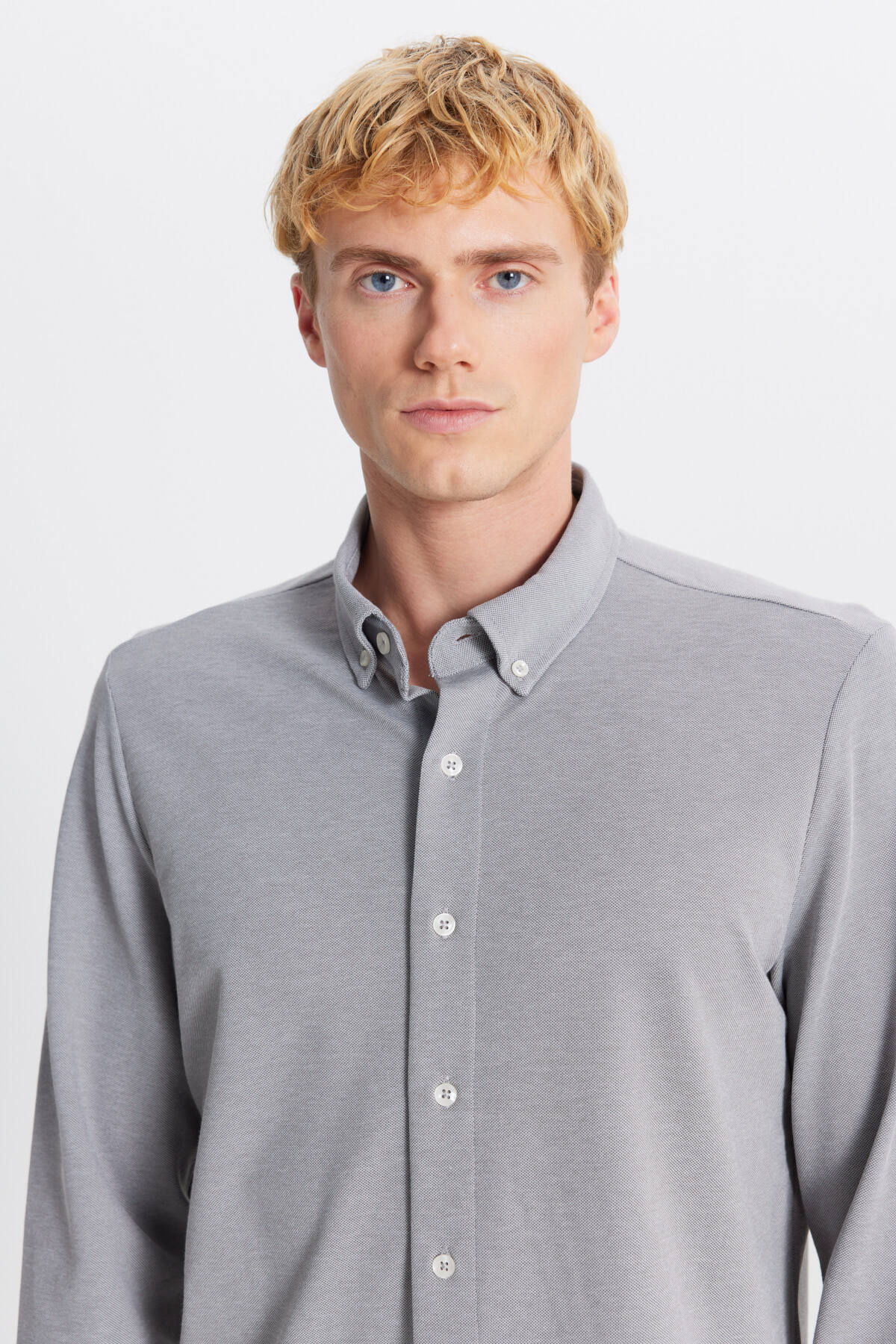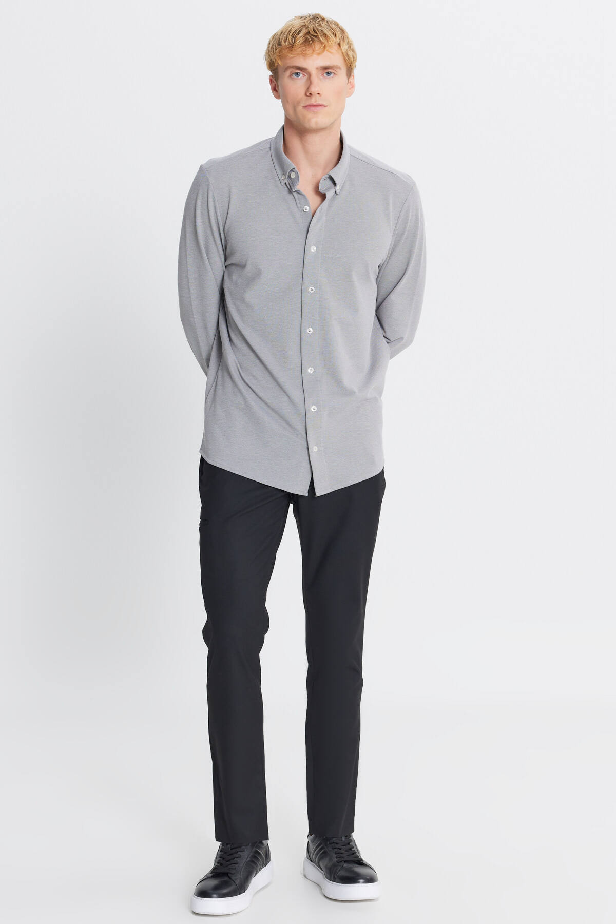 خرید اینترنتی پیراهن مردانه بافتنی یقه دکمهدار باریک و مناسب از جنس پنبه خاکستری برند آلتین ییدلیز کلاسیکس AC&Co / Altınyıldız Classics اورجینال از Altınyıldız Classics نمایندگی و فروشگاه معتبر ترکیه