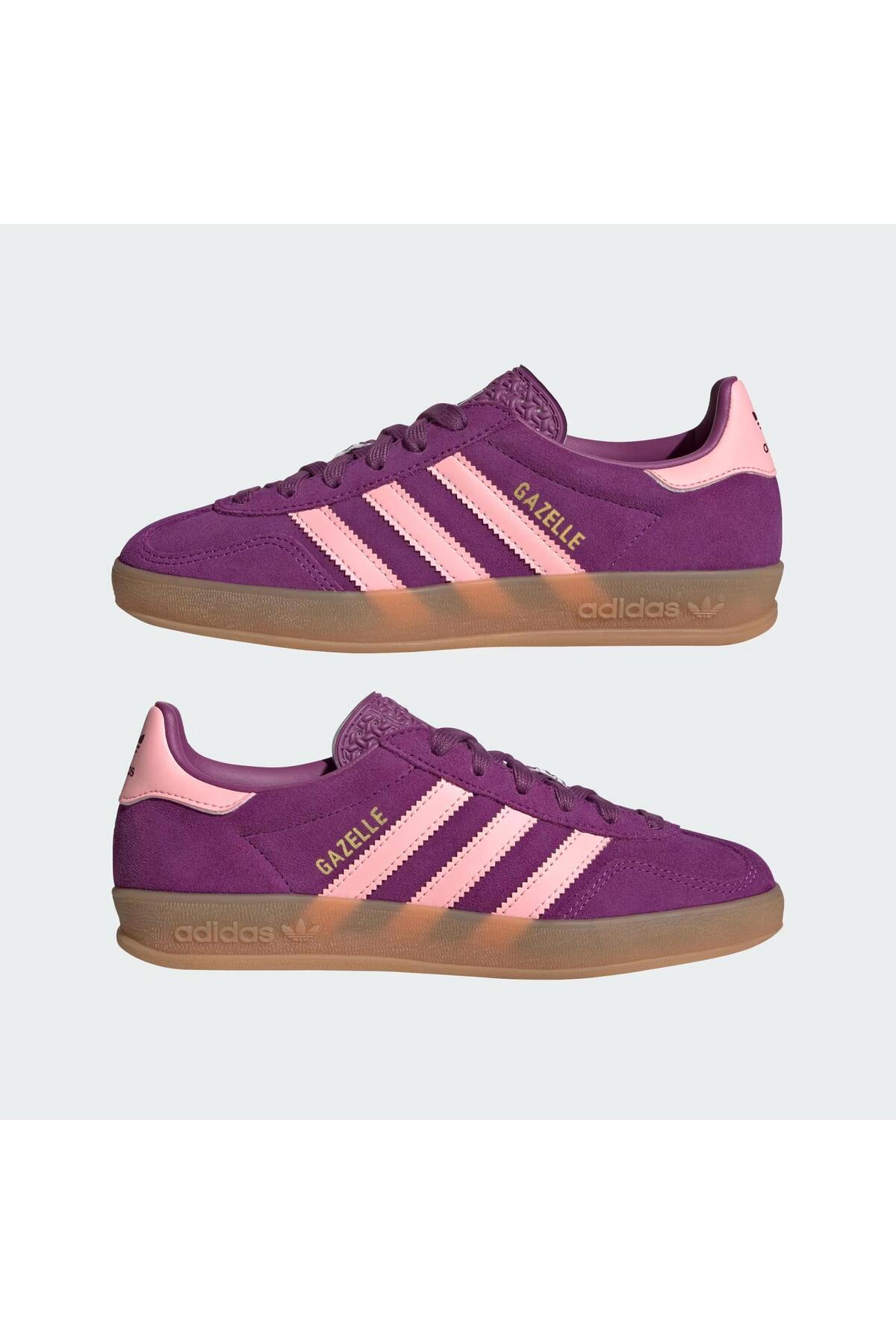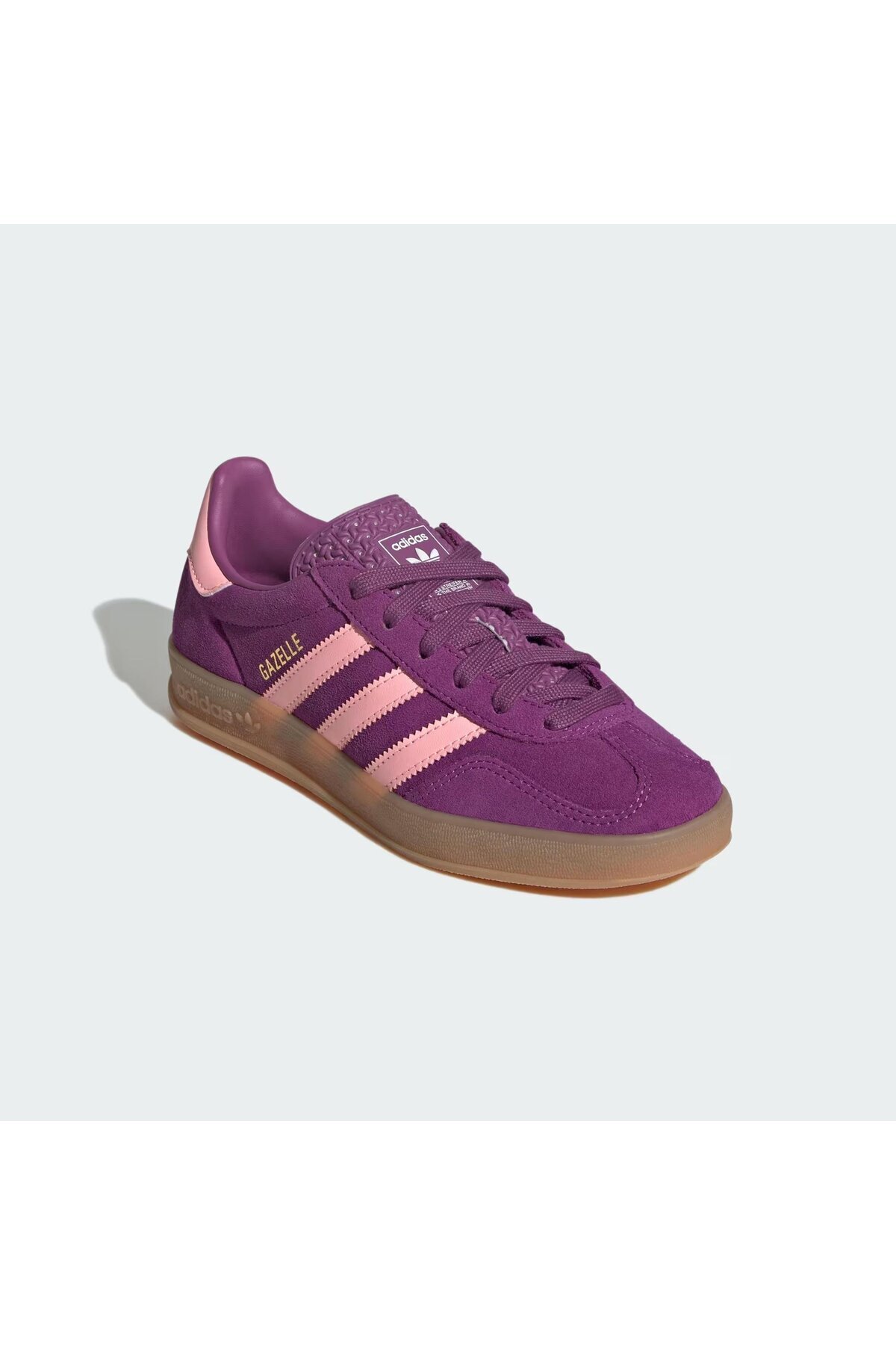 کفش کتانی راحتی آدیداس مدل Gazelle Indoor سایز معمولی طراحی بنددار رویه چرم و مواد مصنوعی آستر مصنوعی و پارچهای زیره لاستیکی