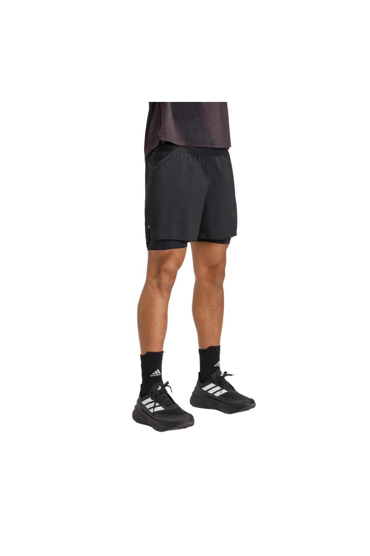 آدیداس شلوارک دویدن مردانه Otr E 3s 2in1 S مشکی، شلوارک دویدن مردانه IQ3808