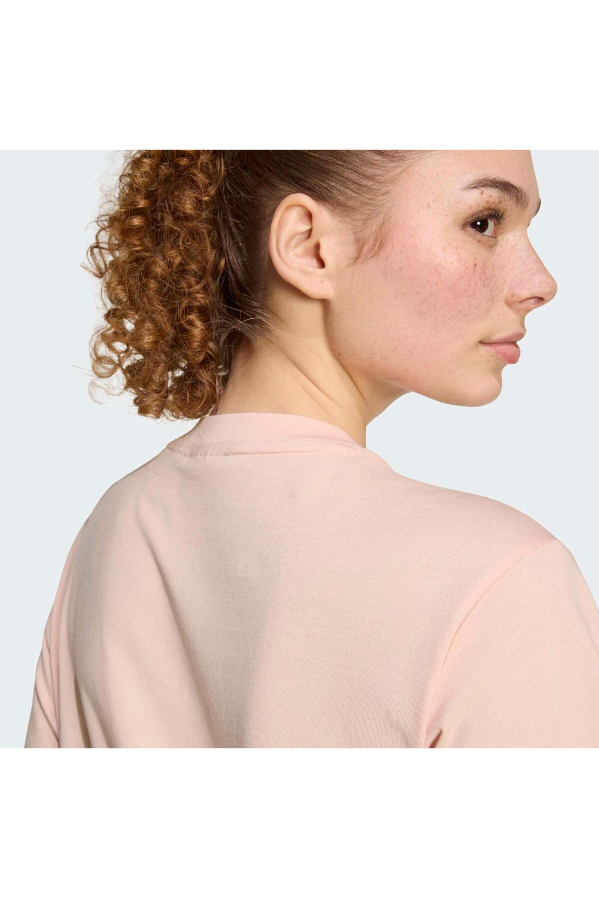 خرید اینترنتی تی شرت زنانه یقه گرد صورتی اسنشالز مدل KE0429 با لوگوی کوچک برند آدیداس adidas اورجینال از Samuraysport نمایندگی ترکیه