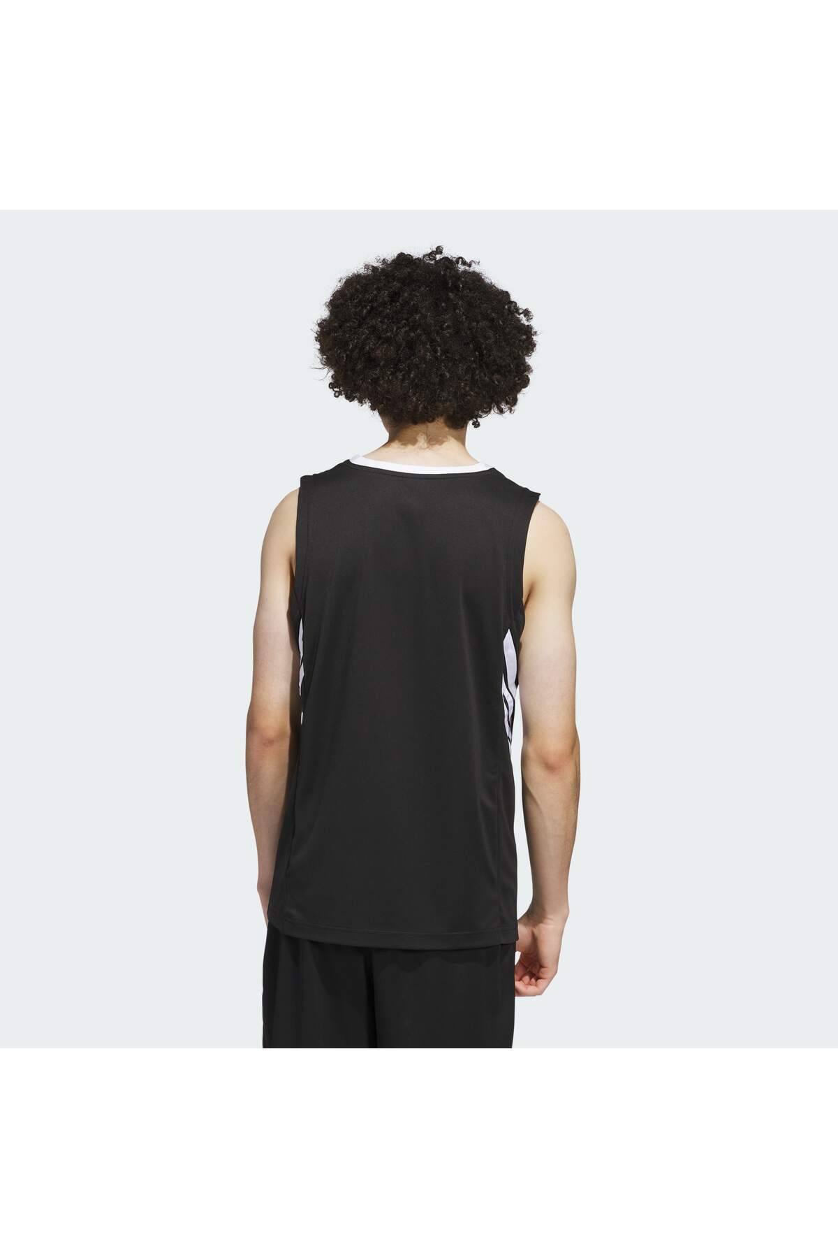 این تاپ بسکتبال آدیداس دارای سوراخهای پهن روی بازوها و یقه هفت برای طیف وسیعی از حرکت در هر پرش است.